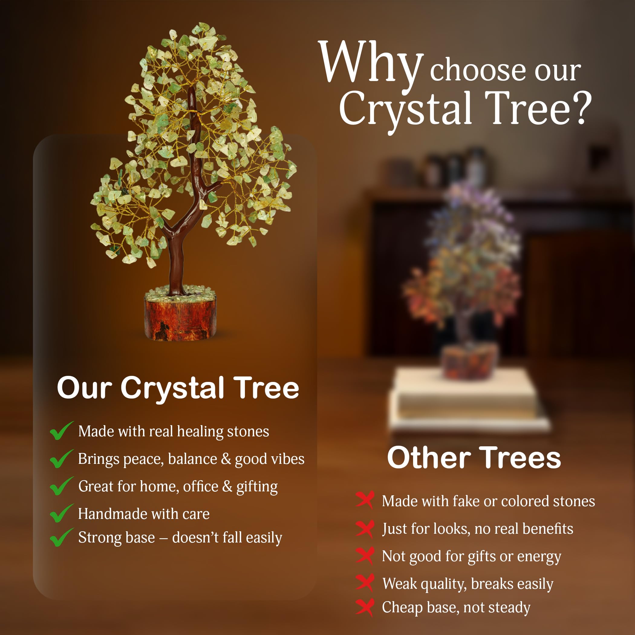 A GREAT ACCENT TO ANY HOME OR OFFICE - Green Jade crystal tree is a go-to attire with all kinds of home and office interior. The green hue of this crystal tree adds a great accent. Can be ideally placed on any office desk, and living room. Symbolizing like a blooming tree this bonsai tree is an instant sight catchy icon. Best for feng shui decor, home decor, crystal decor, chakra decor, tree of life decor, shelf decor tree, gemstones decor, crystal decor, decorative crystal stones.
