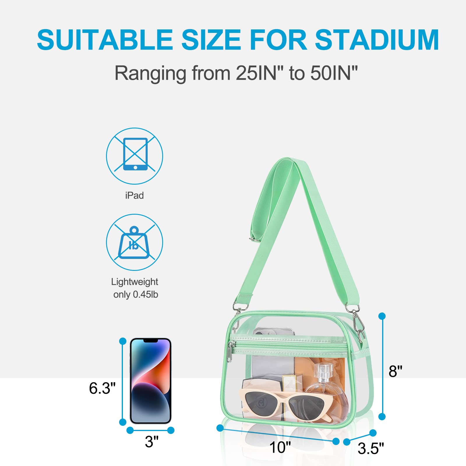 [Stadium Sports Fan Messenger Bag 12" x 6" x 12"] Measuring 6.5" H × 8.7" L × 3.4" W, this bag meets the standard clear bag for stadium events policy (under 12"×12"×6"), making it ideal for stadiums, concerts, and sporting events