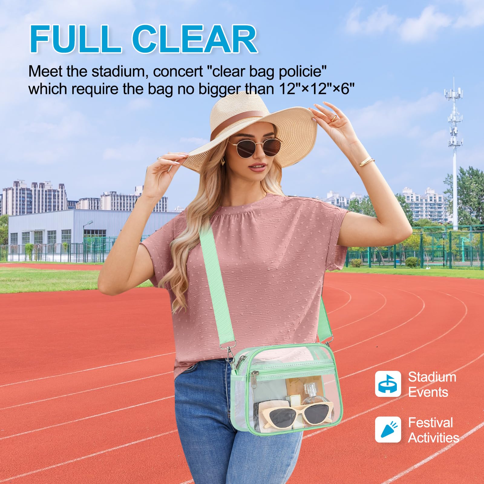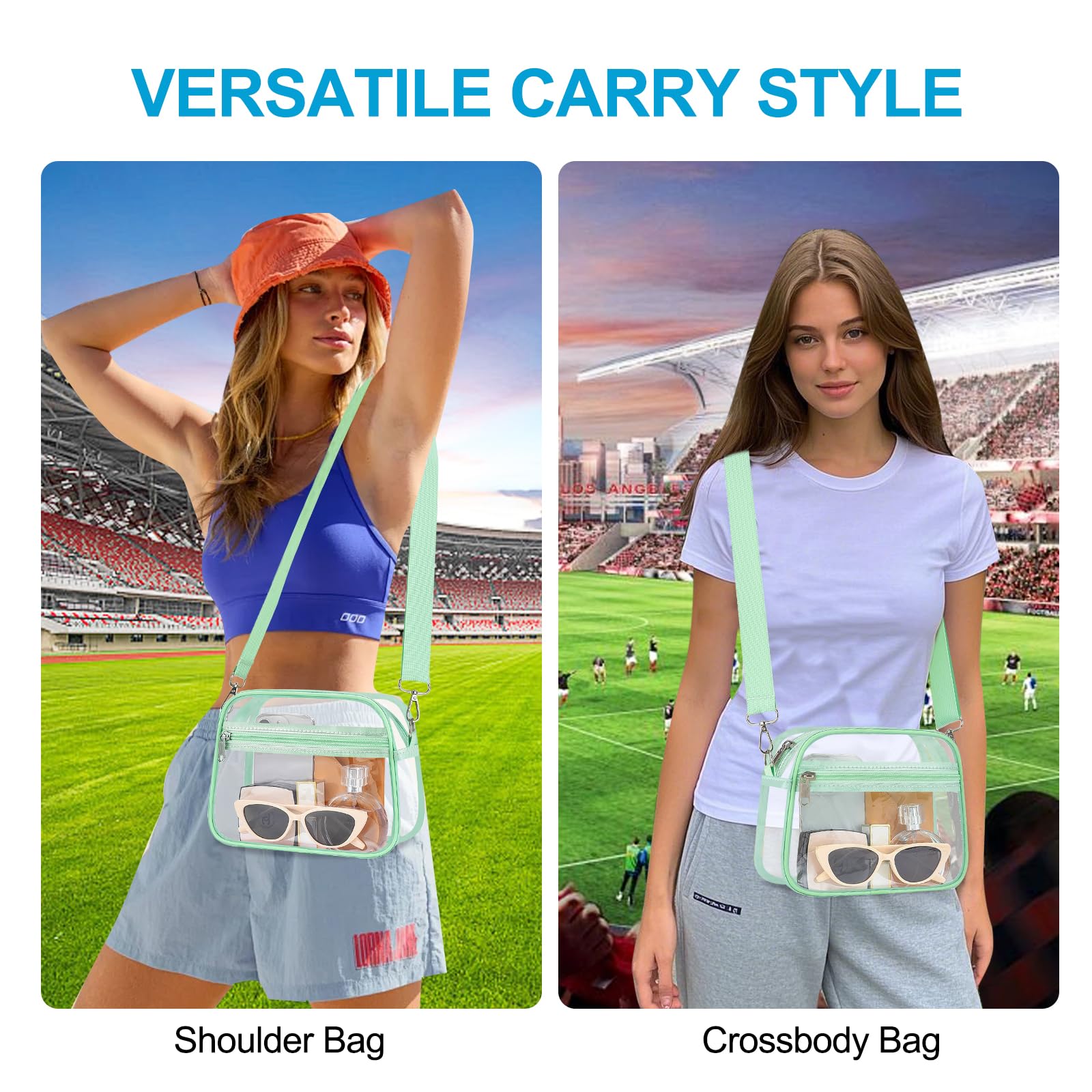 [Practical Storage Capacity] This crossbody bag features a main compartment that can hold a small wallet and phone, a front zip pocket for keys, lipstick, tissues, and sunglasses, plus an inner pocket for cash, cards, and tickets—making it a must-have accessory for sports events