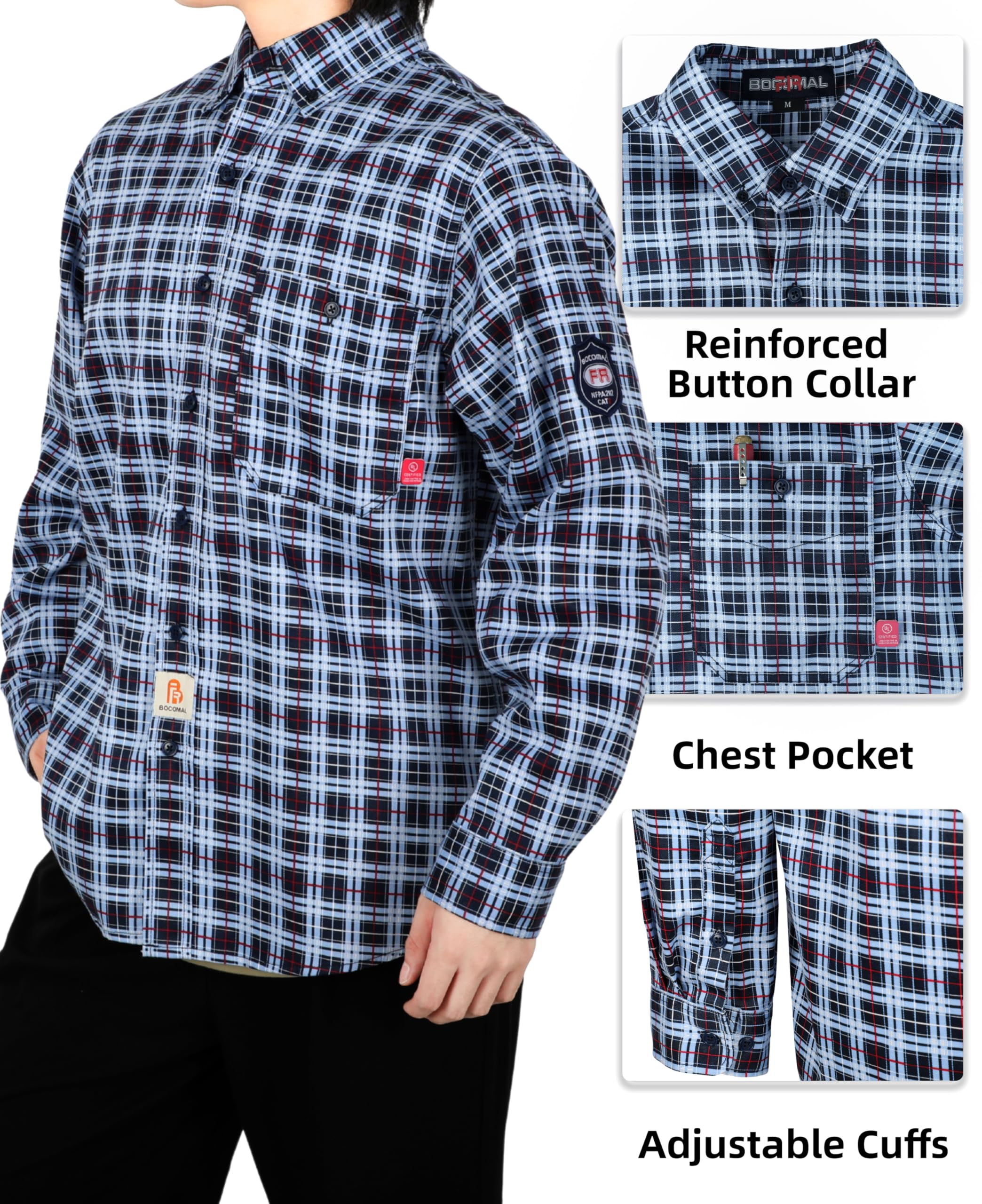 FASHION AND COMFIT:This FR Work Shirt Provides A Perfect And Comfortable Fit Also Soft And fashionable.We Did Prewash/ Preshrunk And Wrinkle-Free.