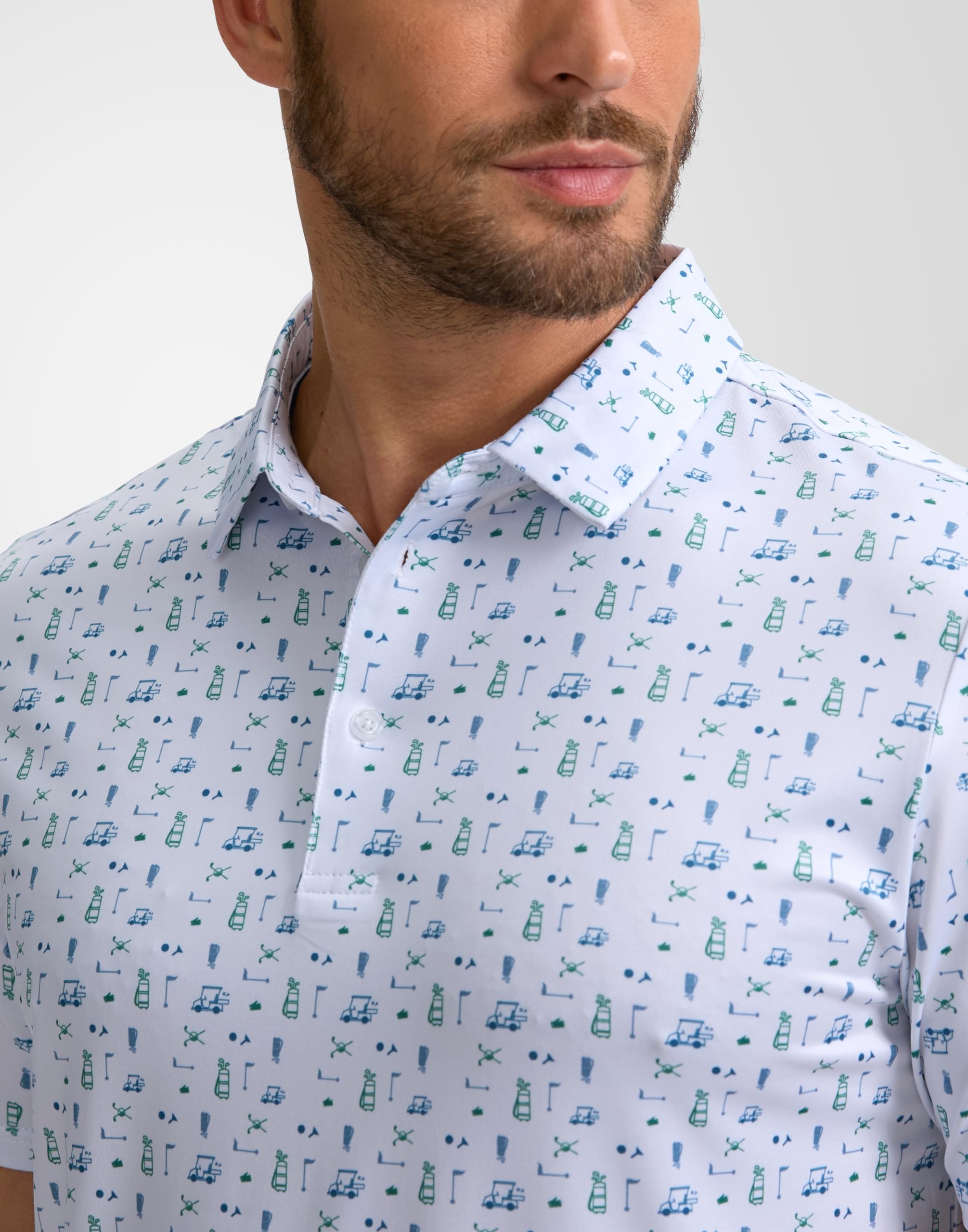 Performance Polo: Breathable, lightweight men's polo shirts is made with moisture wicking and quick dry material, so it will keep you cool and no sticking or clammy feel during those hot months outside. UPF 50+ protect you from the uv light of the sun. The perfect combination for the golf course or any outside sports.
