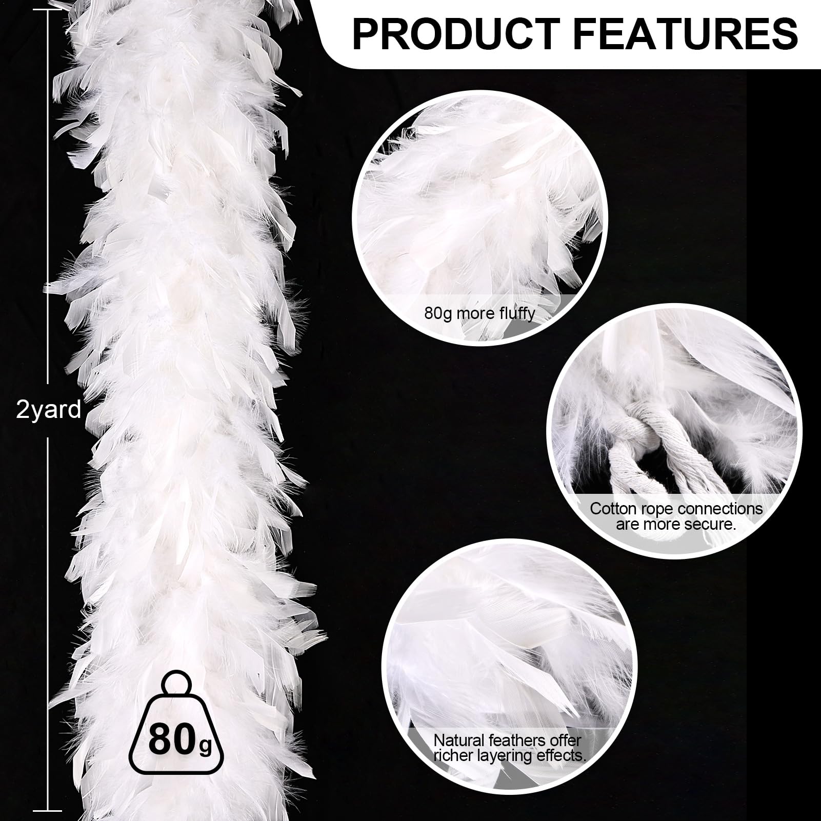 ❤️ Applications:These feather boas are perfect for dance performances,weddings,special events, Mardi Gras celebrations,Christmas parties, New Year’s Eve parties, Halloween parties, etc; also can be used on arts crafts project and holiday decoration.