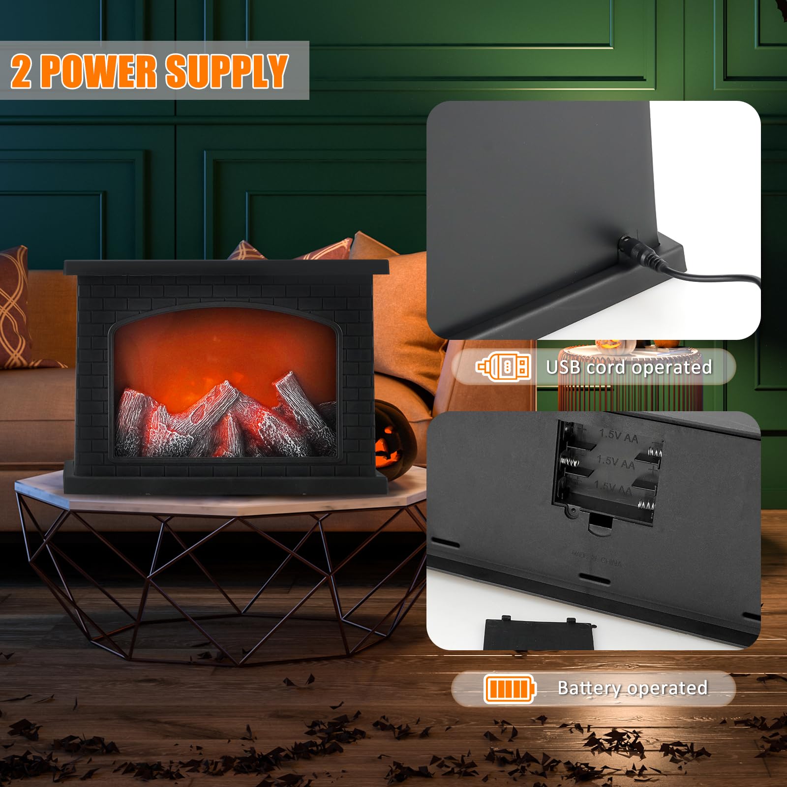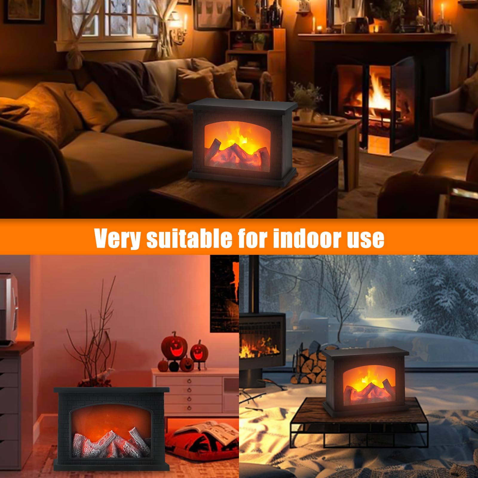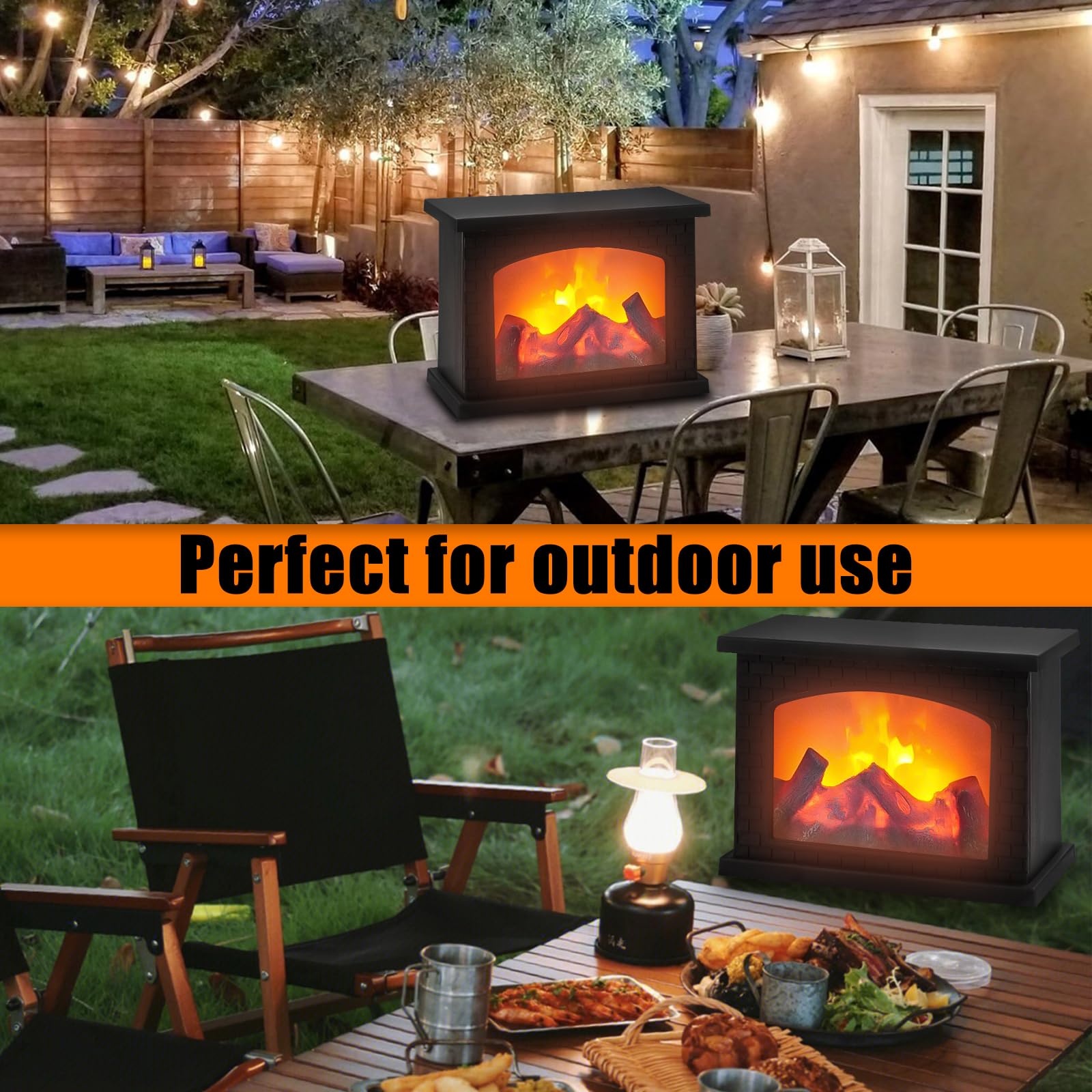 【Battery Powered/USB Charging】: Our electric fireplace lamp offers convenient power options. It can be powered by batteries, making it portable and suitable for both indoor and outdoor use. Additionally, it can be charged via USB for extended usage. (Not include 3*AA batteries).