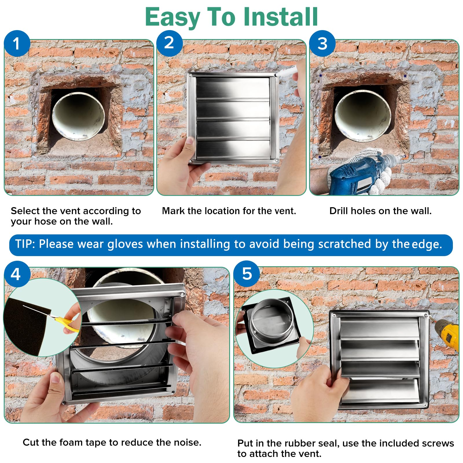 [Stainless Steel Materials] Dryer Vent Covers have solid construction and a nice finish, durability, super sturdy and weatherproof, and withstand harsh weather. Over time it won't rust or crack like the plastic dryer vents or vents made of other metals