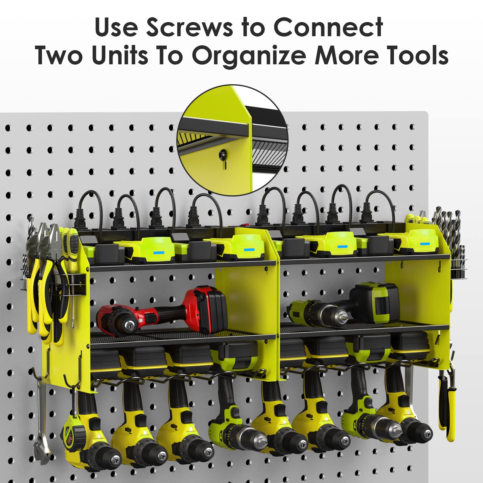 Power tool organizer with charging station, come with 8 outlets. If you have a lot of rechargeable tools, you can charge everything right in the rack and avoid searching for sockets. 6ft power cord included.