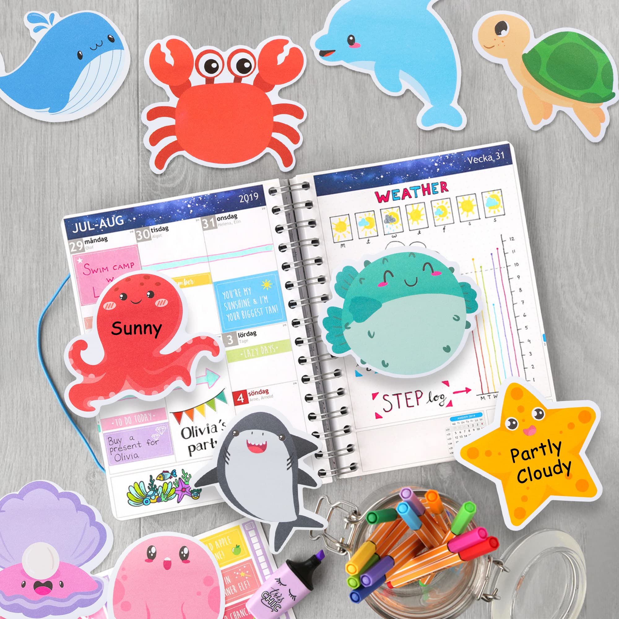 Wide Occasions: The lovely ocean animal sticky notes set is suitable for ocean themed birthday party, activities, family, students, teachers, school supplies, office supplies, and etc.