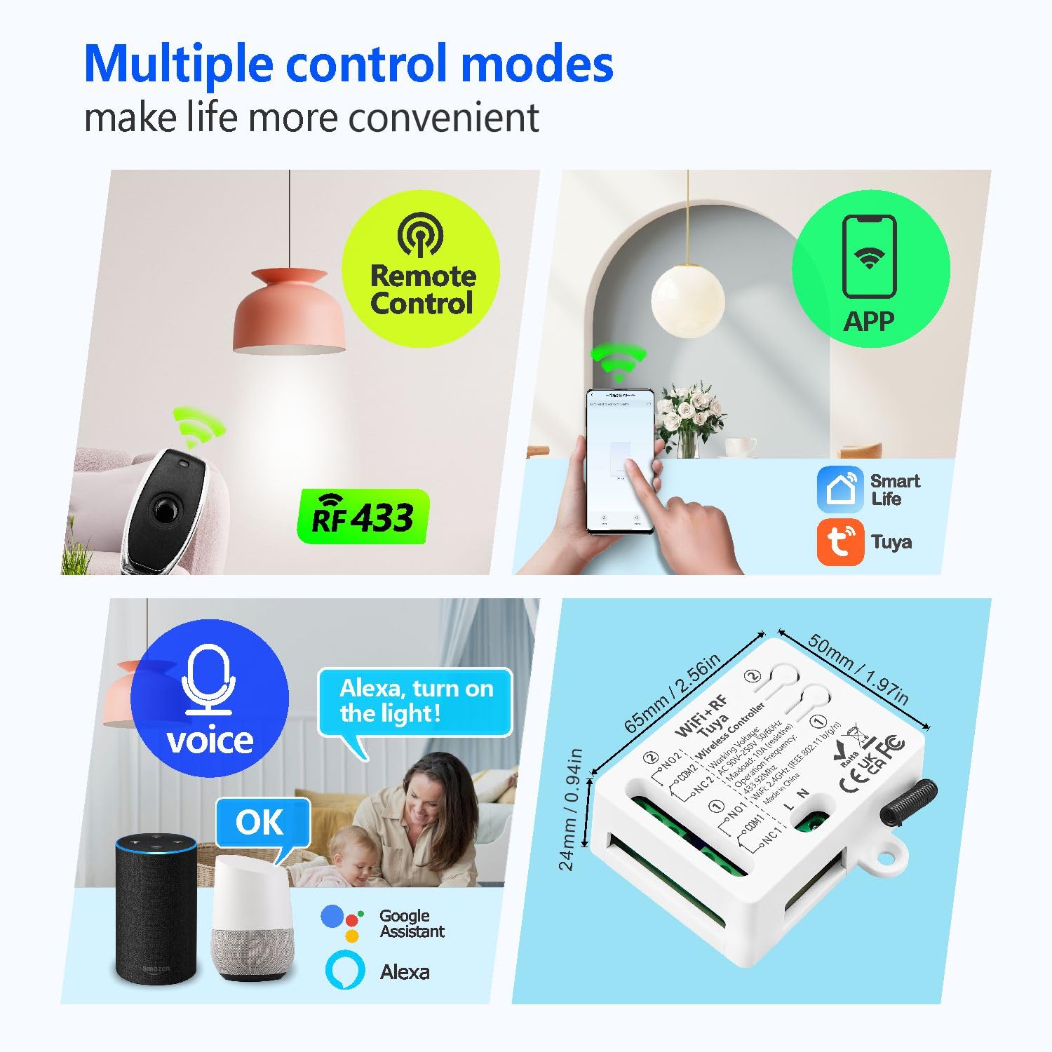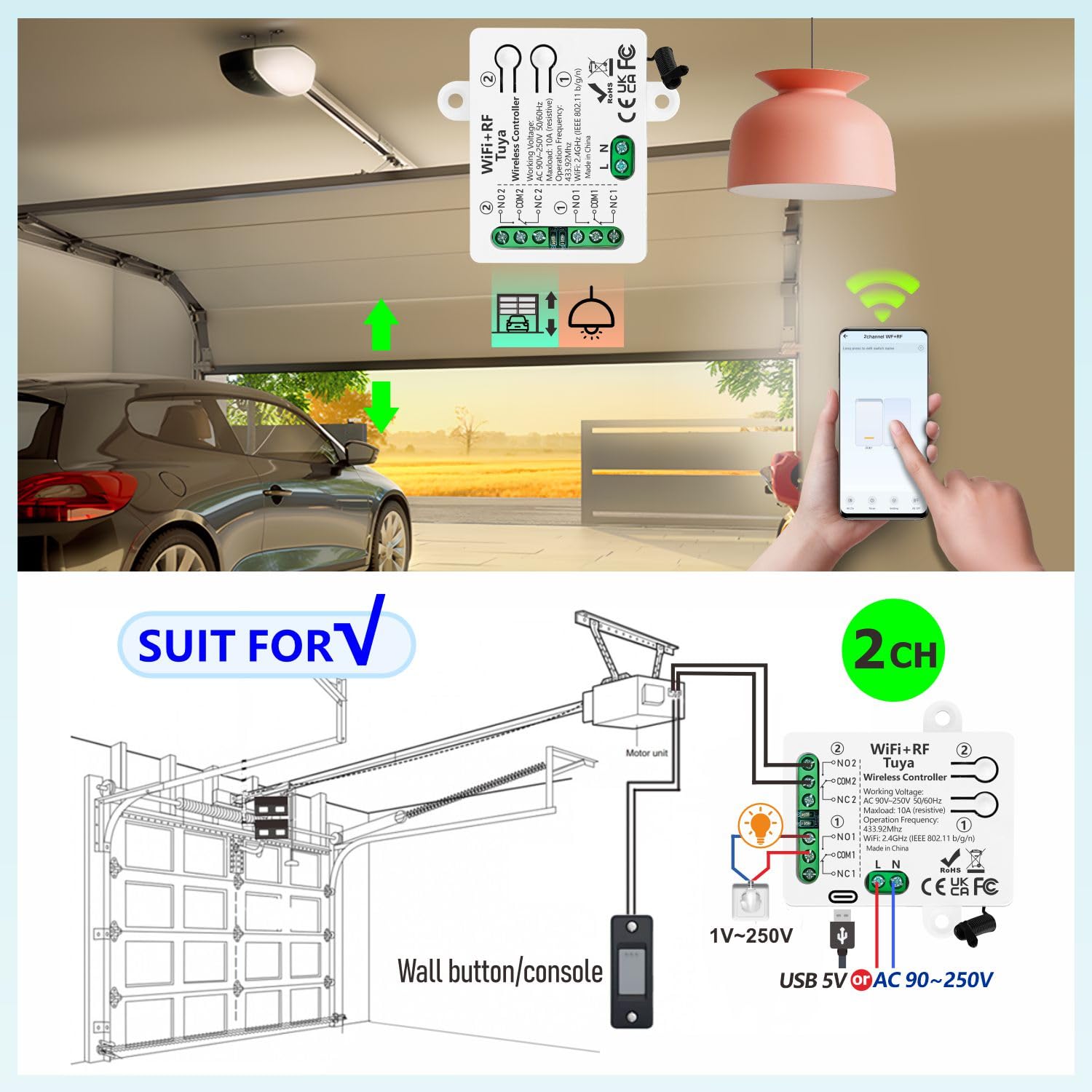 【Add RF remote control】 This WIFI+RF switch is compatible with the 433 MHz radio remote control. Each receiver can store about 20 remote controls.