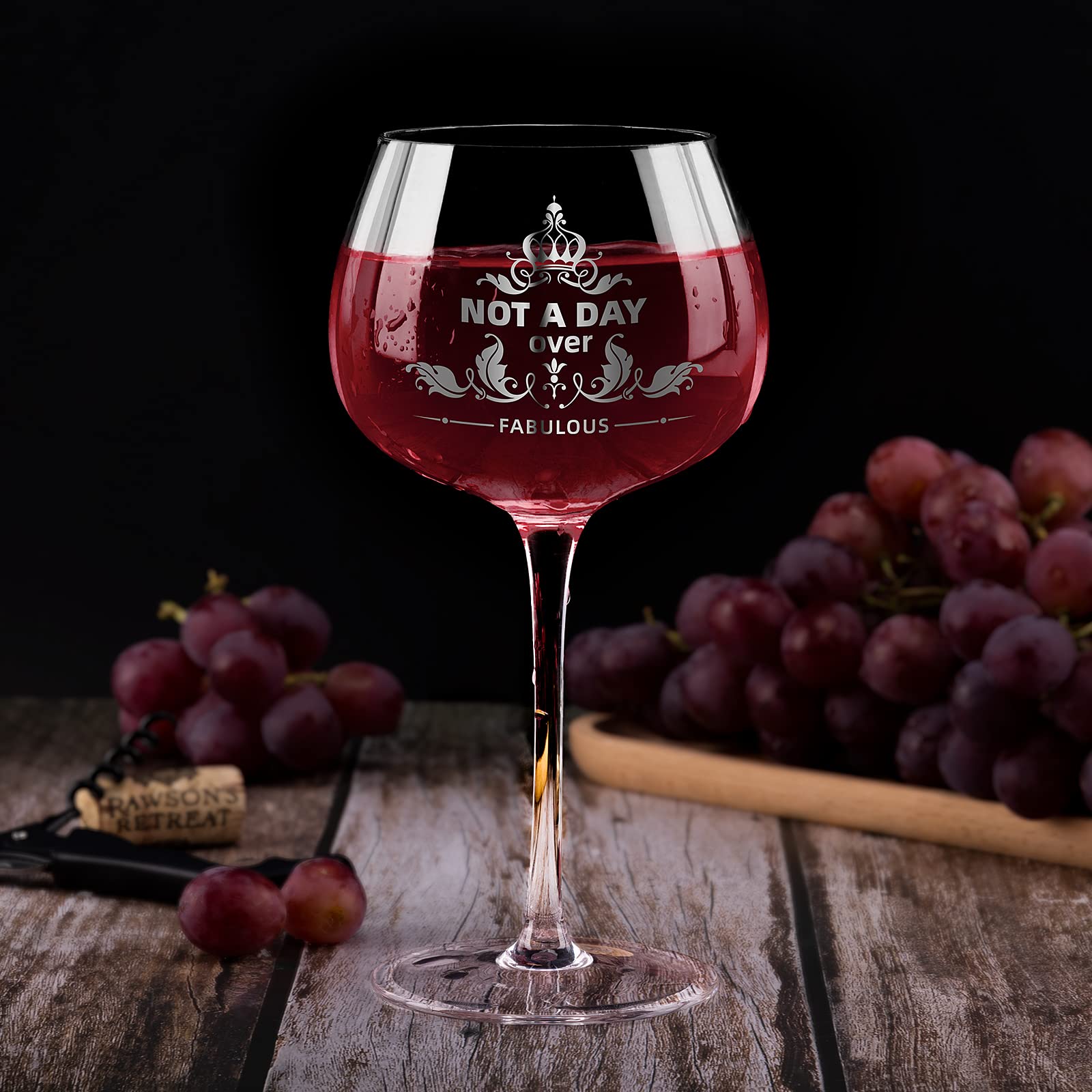 Impress Her at First Sight: Having a headache about choosing a gift for wine loving women? Try this Unique Custom Wine Gift Box for her! Our gift box is beautifully designed with an elegant touch. No need to repackage.Clear and legible printing "NOT A DAY Over Fabulous" on the glass is ready to celebrate her birthday or anniversary.