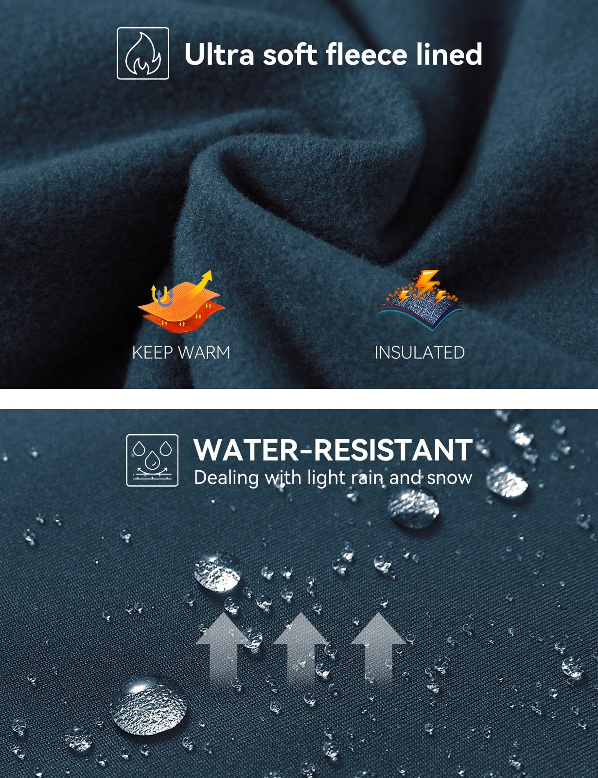Warm & Water Resistant: The fleece lined leggings women is made of soft fleece inner layer traps heat to keep you warm & comfortable, perfect for cold days under 40°F. Water resistant fabric can handle light rain for a short time or keep dry on snowy days and provide wind protection.