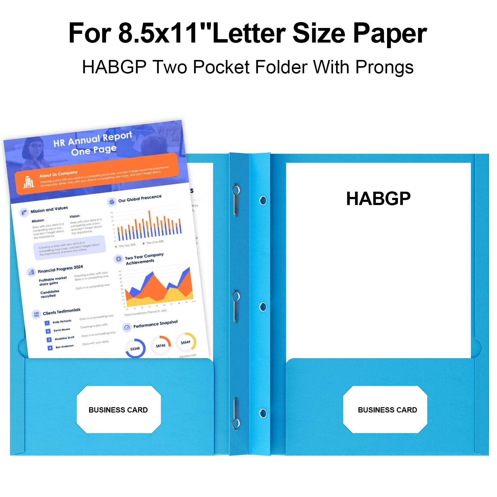 Total 100-Pack: Bulk set of 100 premium paper folders with pockets and prongs—ideal for offices, schools, or large projects. Designed for 8.5” x 11” paper files. Each File Folders has two pockets and two business card slots design that provide ample storage space to hold 50 letter size sheets without folding or creasing them.