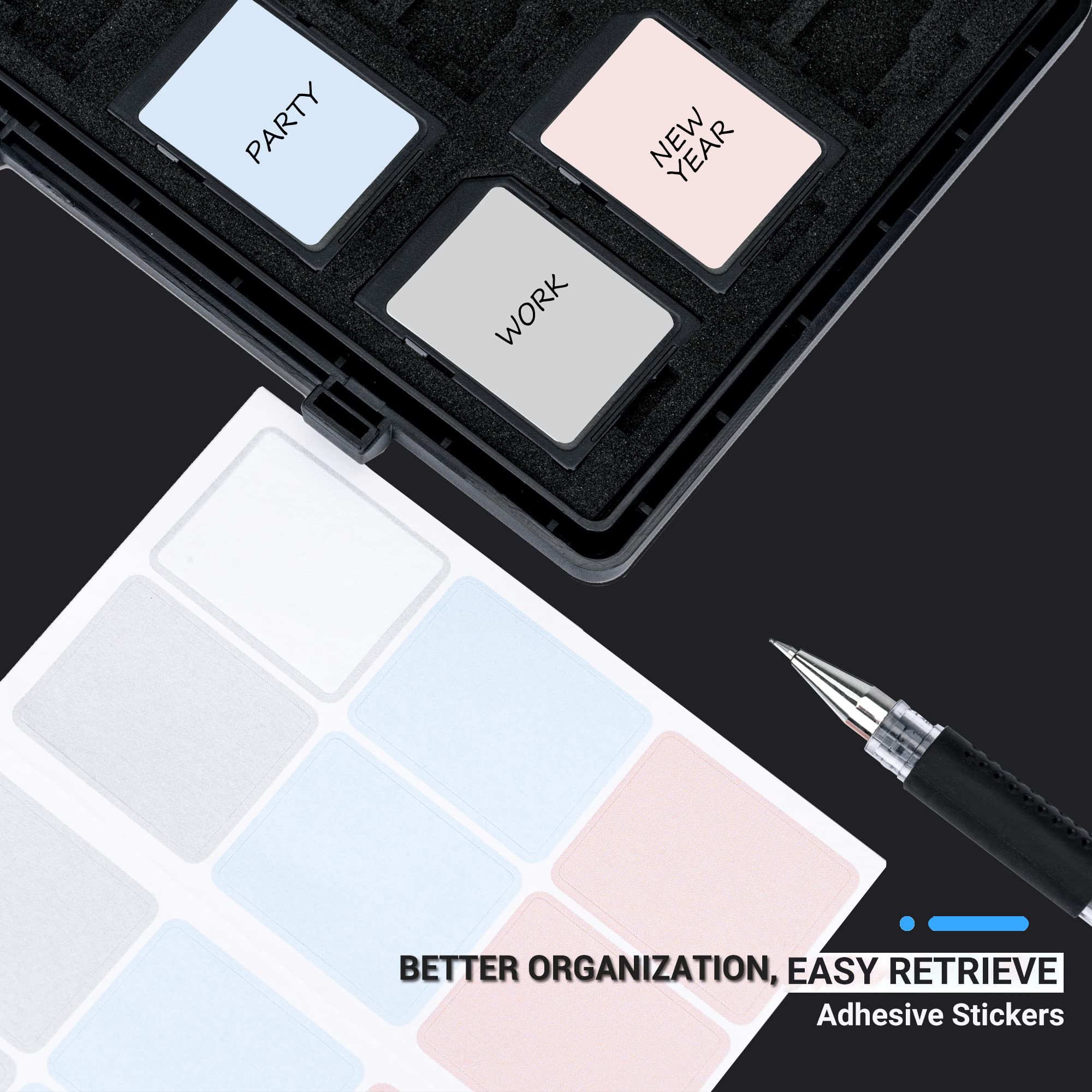 【Soft Foam Lining & Easy to Carry & Writable Labels】:The soft foam lining not only allows you easy to install and easy to remove memory card, but also protects memory card from damage. The size can be easily put into backpack for easy carrying.The label keeps your cards perfectly organized and easy to identify.