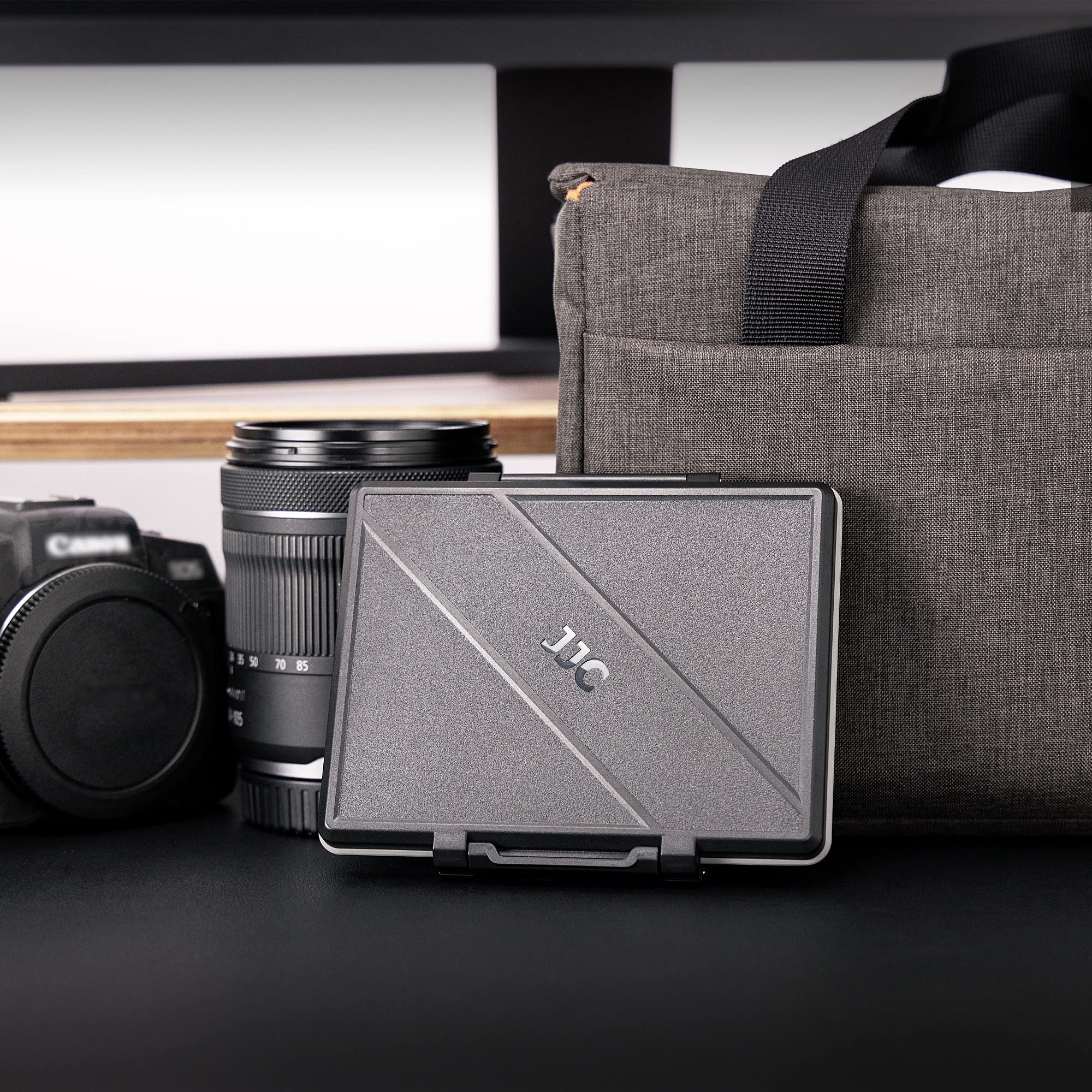 【Ergonomic Locking Systerm】:The memory card organizer lock is closed firmly and can be easily opened with fingers.When the card box is accidentally dropped, the lock can protect the memory card from loss or damage.