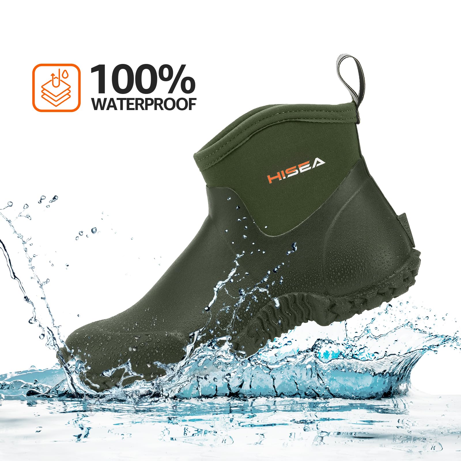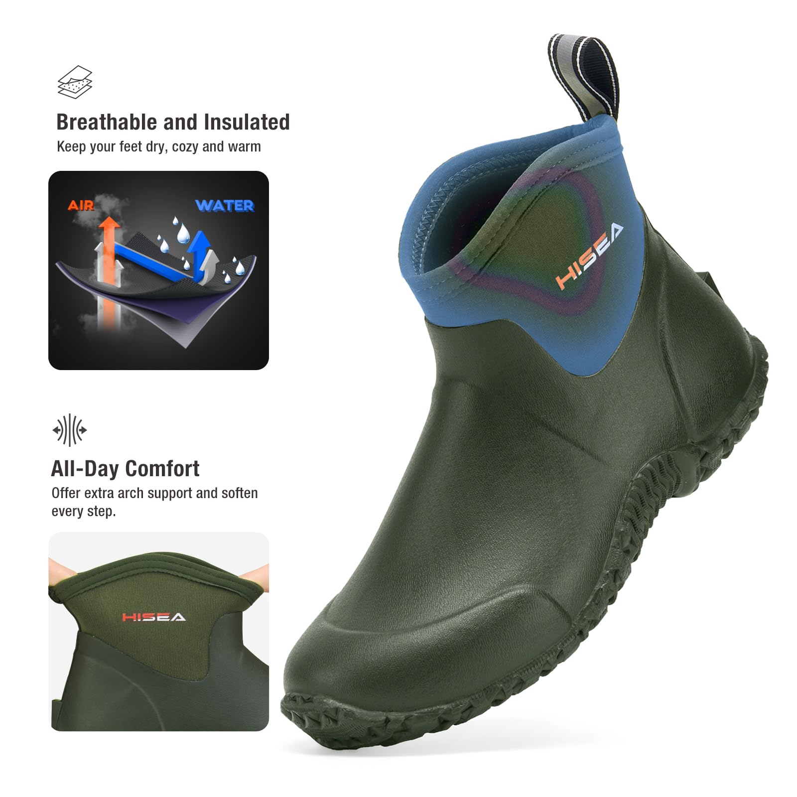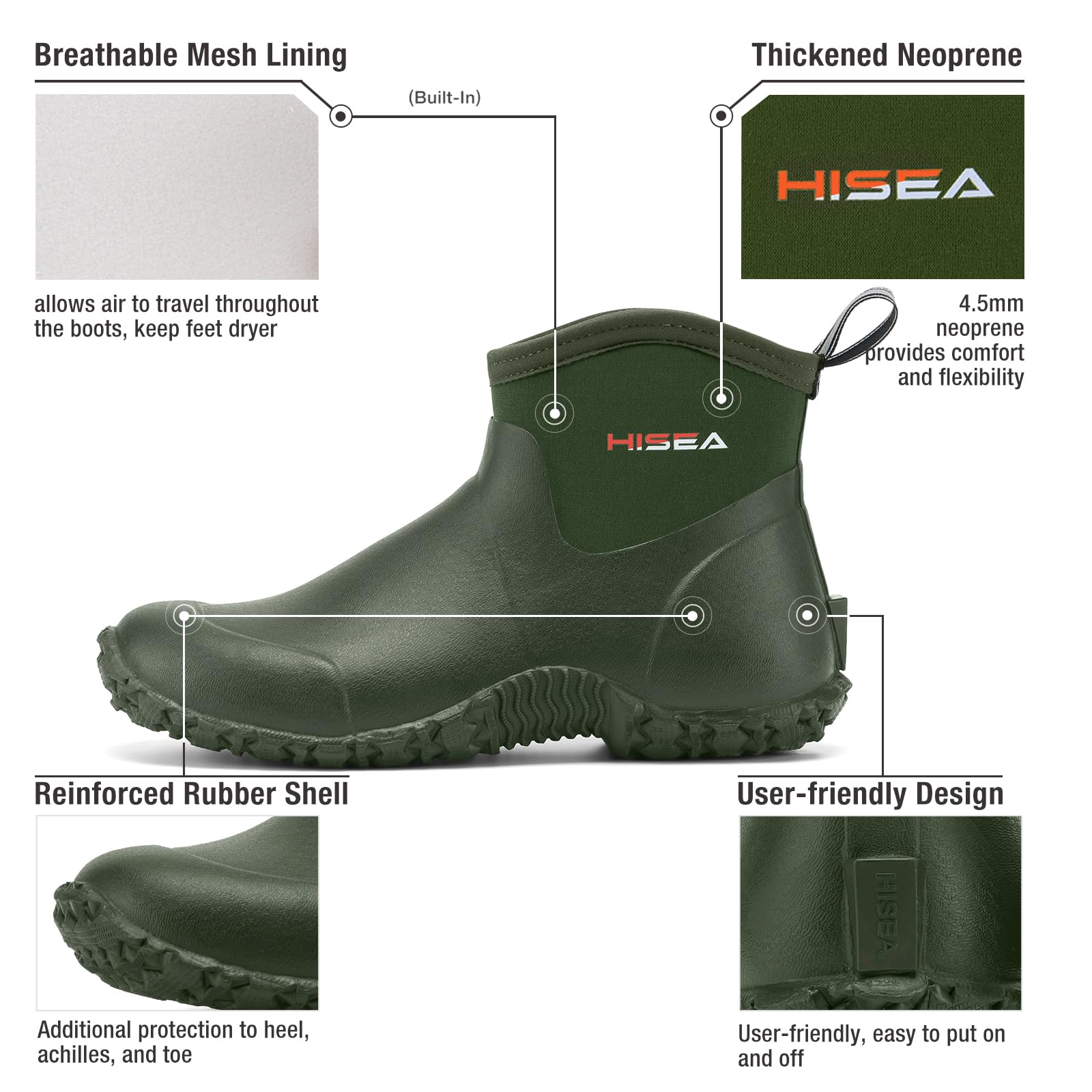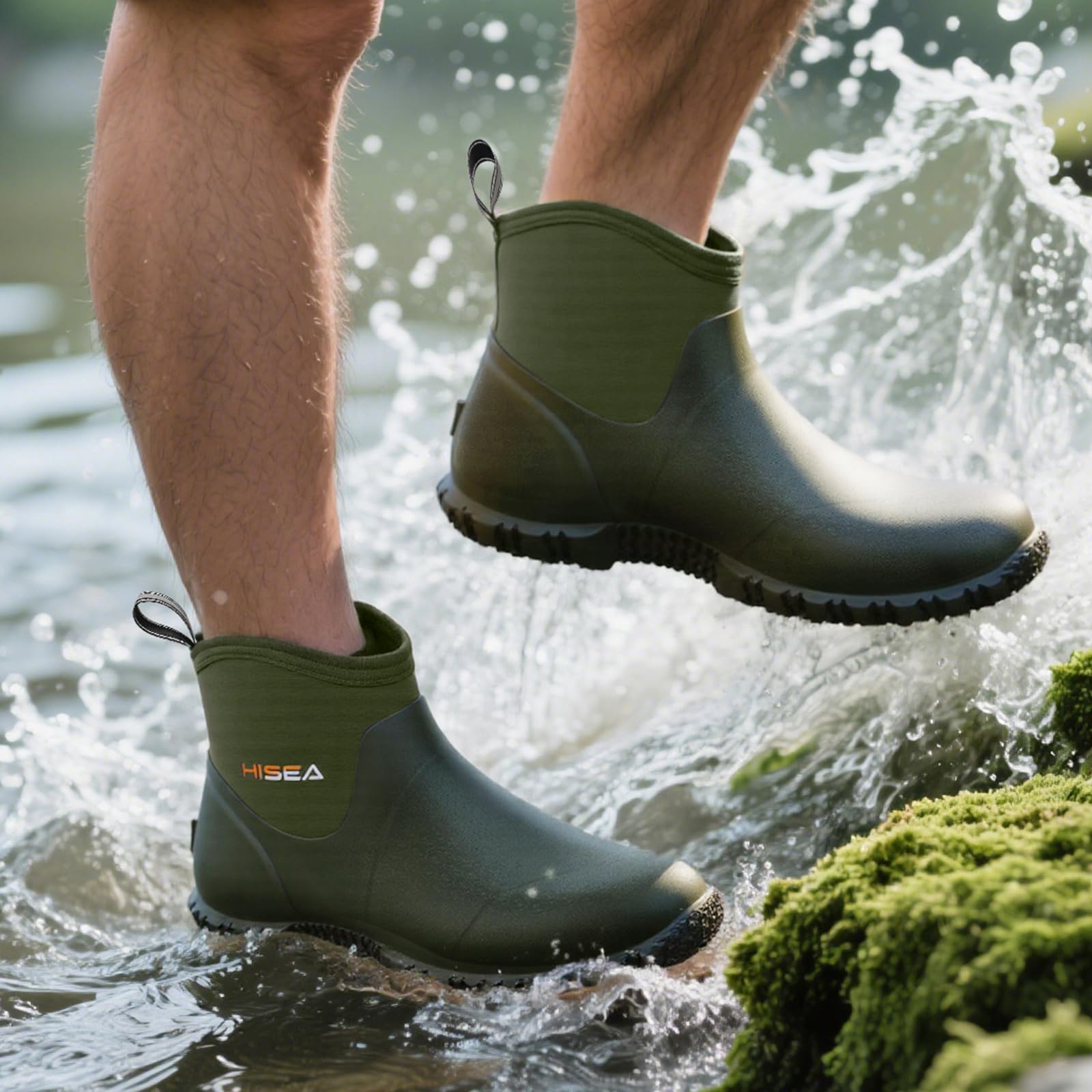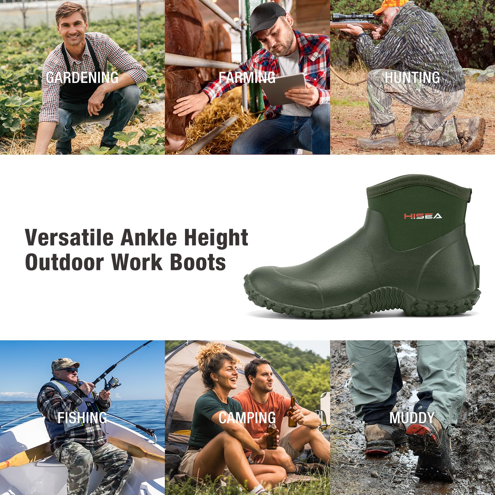 【Multi-Functional Outdoor Work Boots】Slip into waterproof, breathable and comfort with HISEA Men's Ankle-Height Rain Boots. Perfect for all outdoor activities and adventure, such as gardening, camping, hunting, farming, fishing, yard working, walking the dog, fishing. Good for all-day long use on your feet.