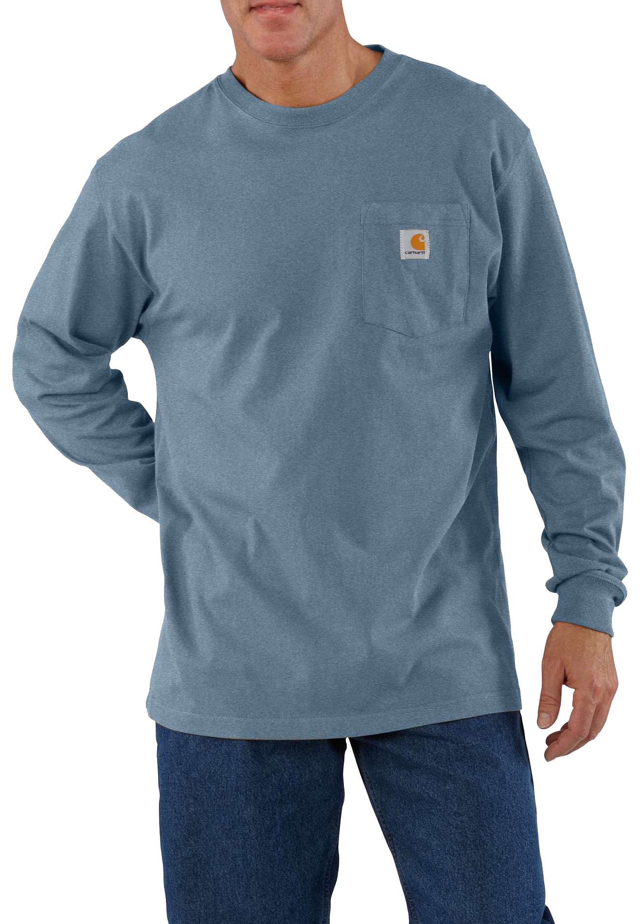 Description Product Description Heavyweight, durable and casual. Holds up when you put it through the ringer day after day. From the Manufacturer Made of 6.75-ounce, 100% cotton jersey our long sleeve pocket t-shirt makes for perfect workwear layered or worn alone. It features a crew neck with a generous left chest pocket and side-seamed construction to minimize twisting. Ash fiber content is 99%/1% polyester. Heather gray fiber content is 90% cotton/10% polyester.