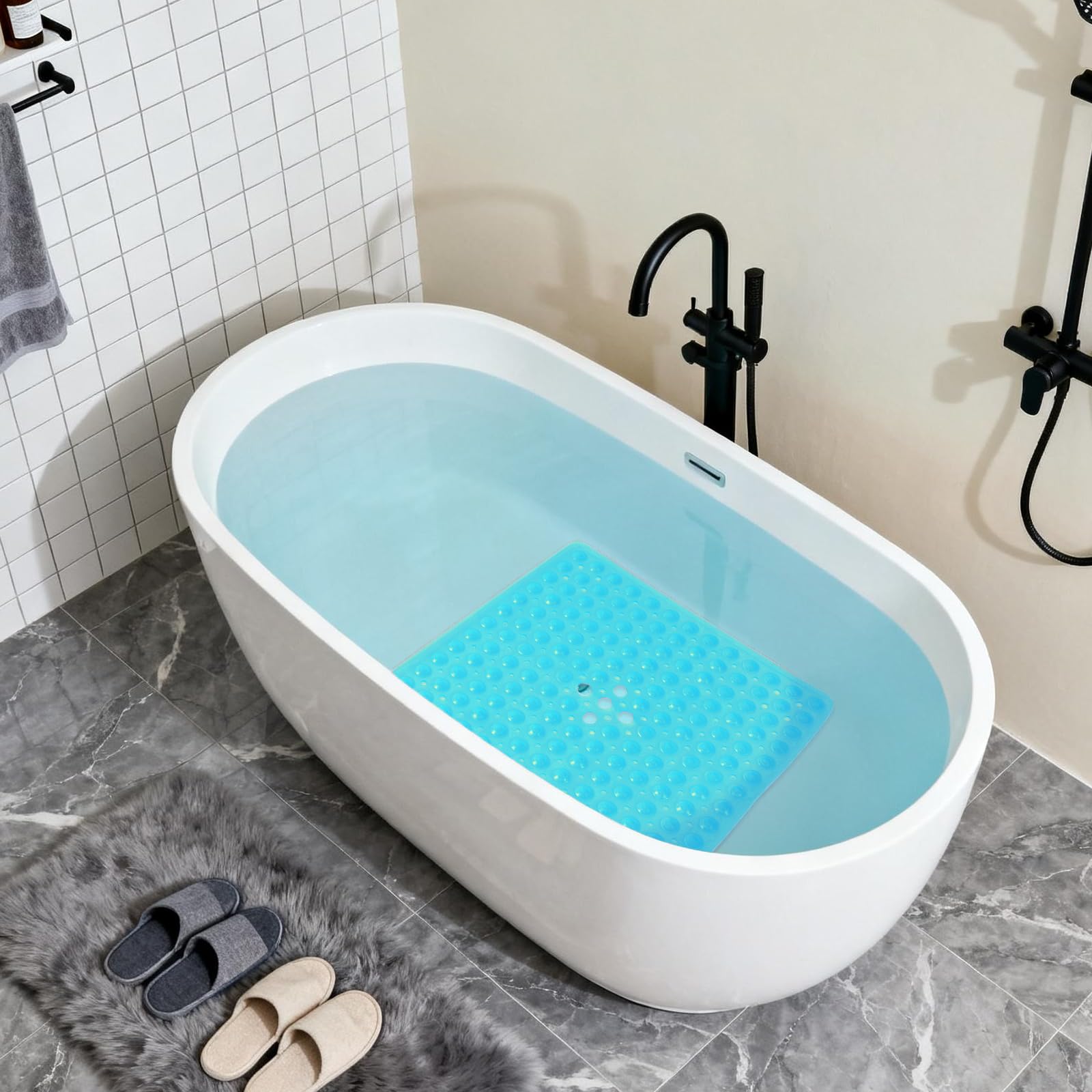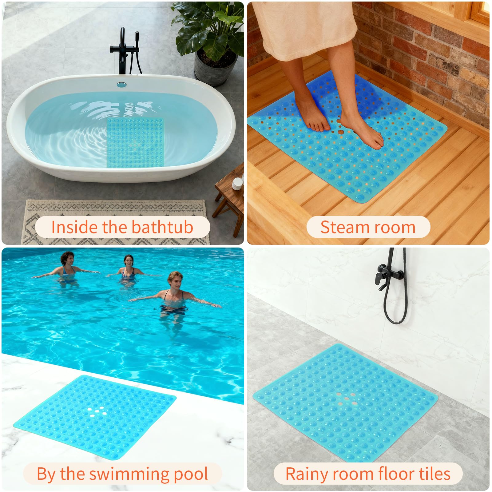 NON-SLIP LARGE BATH MAT: Our non-slip large bathtub mat offers superior coverage with its 20.8×20.8 inch(Approximately 53×53cm, with an error of about 1cm) size, maximum coverage for the bathtub floor. Equipped with 164 special large suction cups, this mat securely stays in place on smooth, clean surfaces, making it ideal for home, spa, sauna, gym baths, and showers.