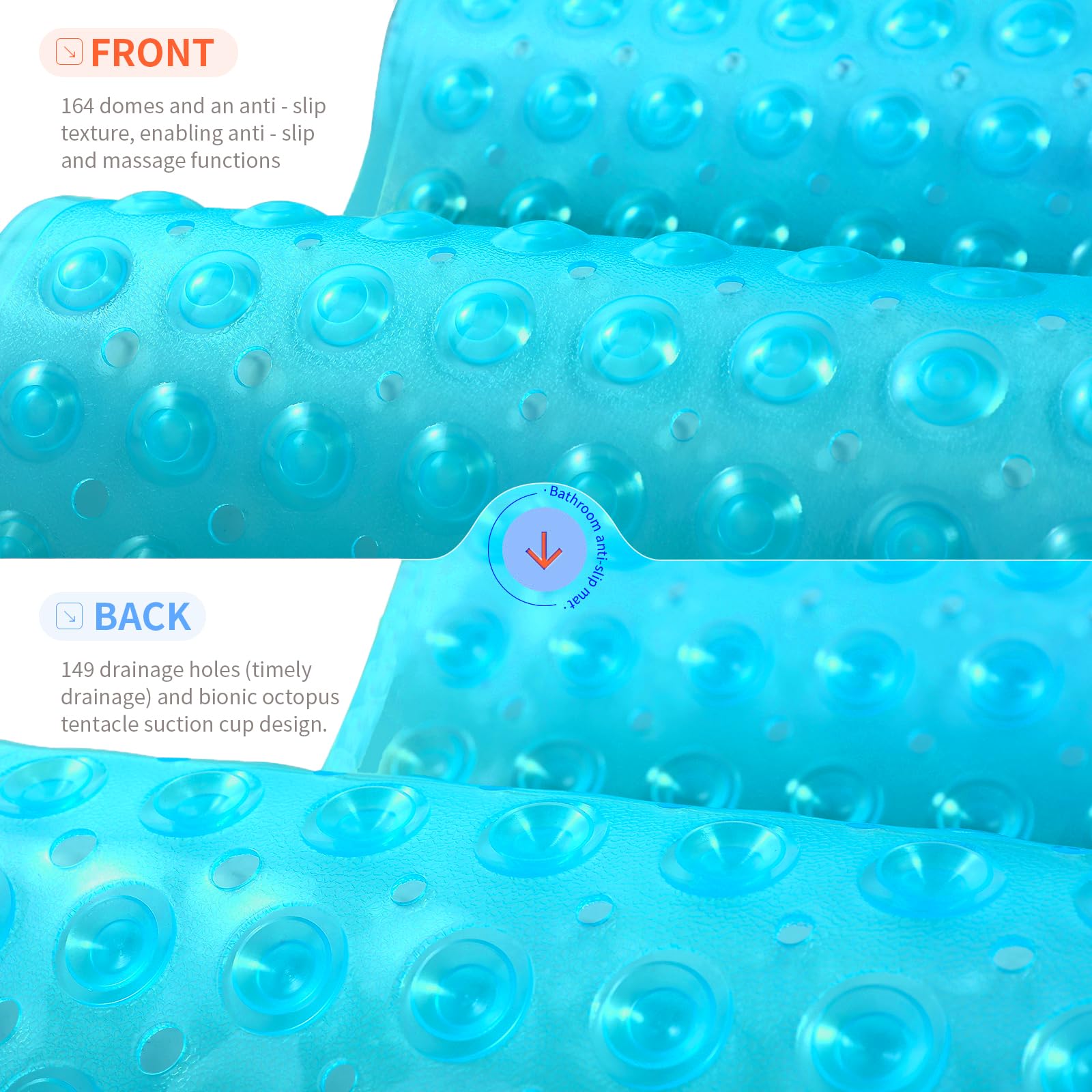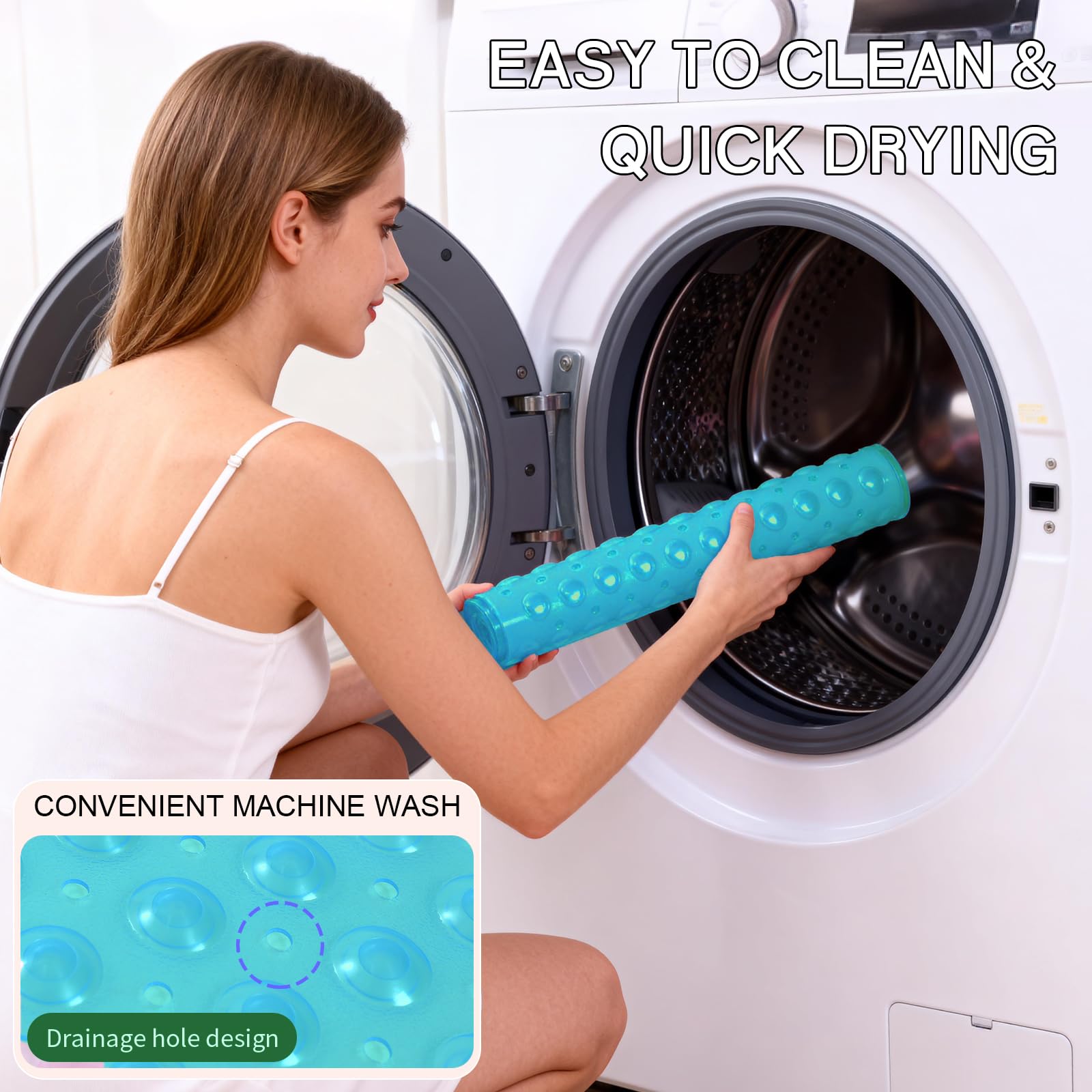 MACHINE WASHABLE: Conveniently machine-washable and easy to maintain, this non-slip bathtub mat can be effortlessly cleaned. Simply toss it into the machine and wash it on a cold water setting. Afterward, hang it to dry. We recommend periodically rinsing and air-drying the shower mat.