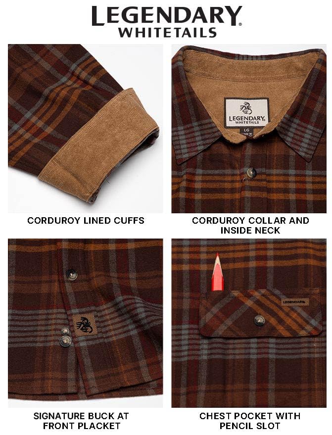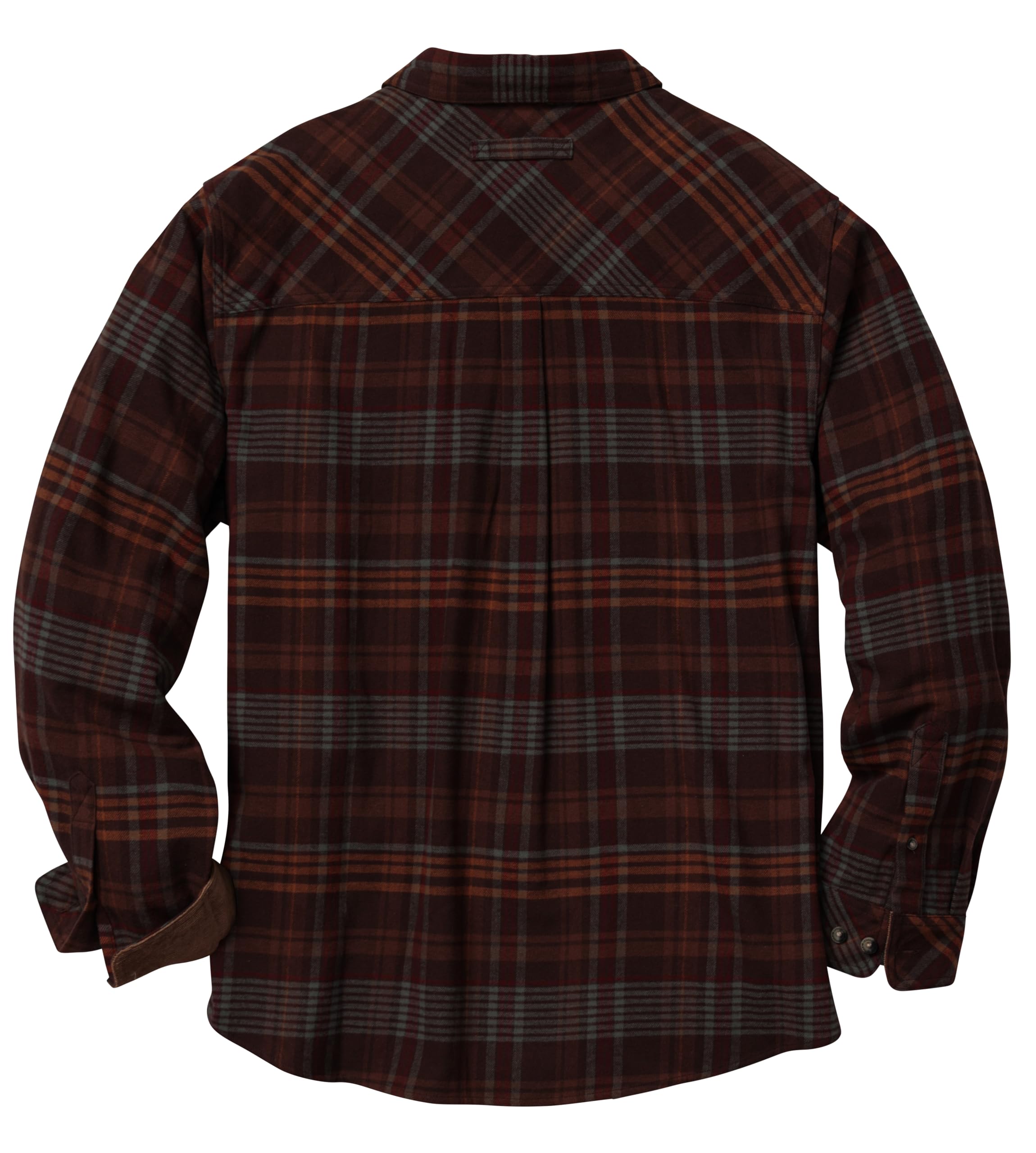 Description Our original single pocket flannel - The Buck Camp Flannel Shirt is the perfect weight to wear alone or layered over a t-shirt or under a shirt jacket. The traditional style and signature corduroy details offer unmatched durability, while the relaxed fit and brushed cotton flannel provide ultimate comfort. With multiple exclusive plaids and solids, they're suitable for any occasion from the woods to the office. The Buck Camp Flannel Shirt gives you an incredible "bang for your buck"! Big & Tall sizes are designed for men over 6'2" and add 2" in body length and 1-1⁄2" in sleeve length.