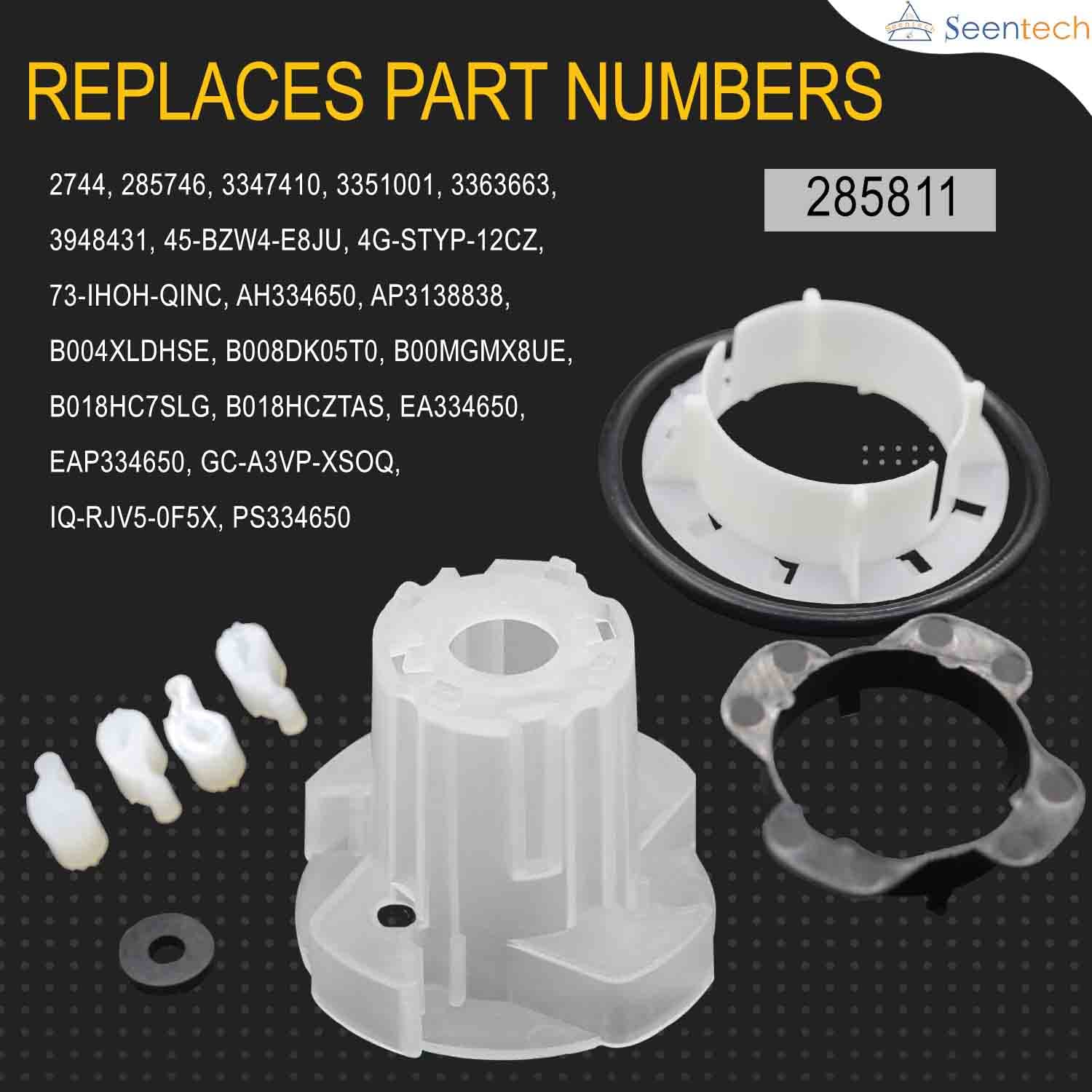 MODEL NUMBER: 285811 Medium Cam Agitator Repair Kit. Replaces part number: 2744, 285746, 3347410, 3351001, 3363663, 3948431, 45-BZW4-E8JU, 4G-STYP-12CZ, 73-IHOH-QINC, AH334650, AP3138838, B004XLDHSE, B008DK05T0, B00MGMX8UE, B018HC7SLG, B018HCZTAS, EA334650, EAP334650, GC-A3VP-XSOQ, IQ-RJV5-0F5X, PS334650