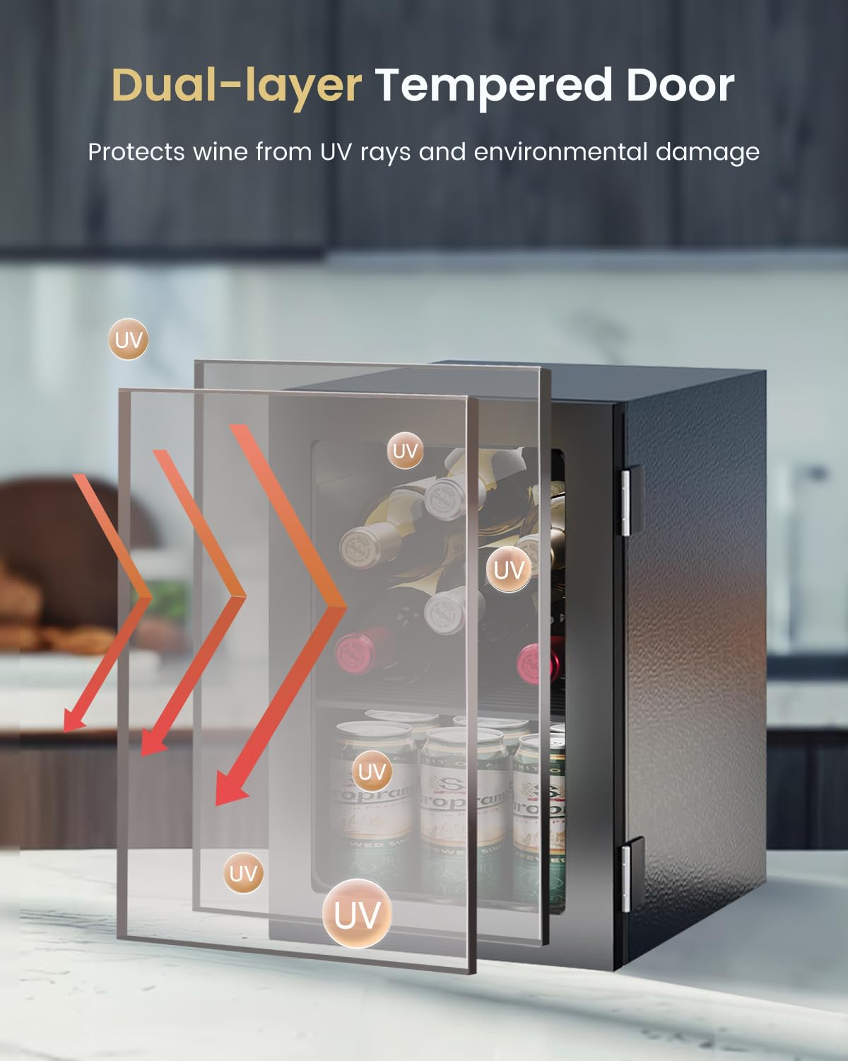 3D Circulating Air Cooling & Reduced frost: The 3D circulating air system and advanced compressor deliver fast, even cooling while minimizing frost buildup. The door with a sealing strip improves insulation and keeps your drinks at a consistent temperature.