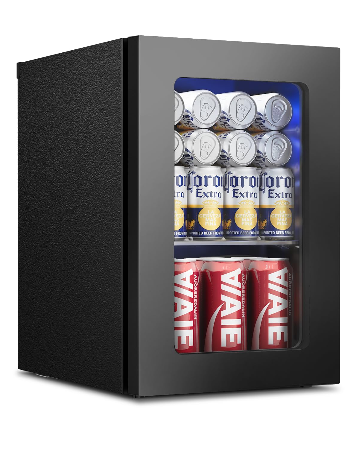 Modern Look, Versatile Use: This beverage refrigerator features a sleek, UV-protective door, soft blue LED lighting. Adjustable feet provide better stability on uneven surfaces. Ideal for home bars, apartments, RVs, or gaming setups.