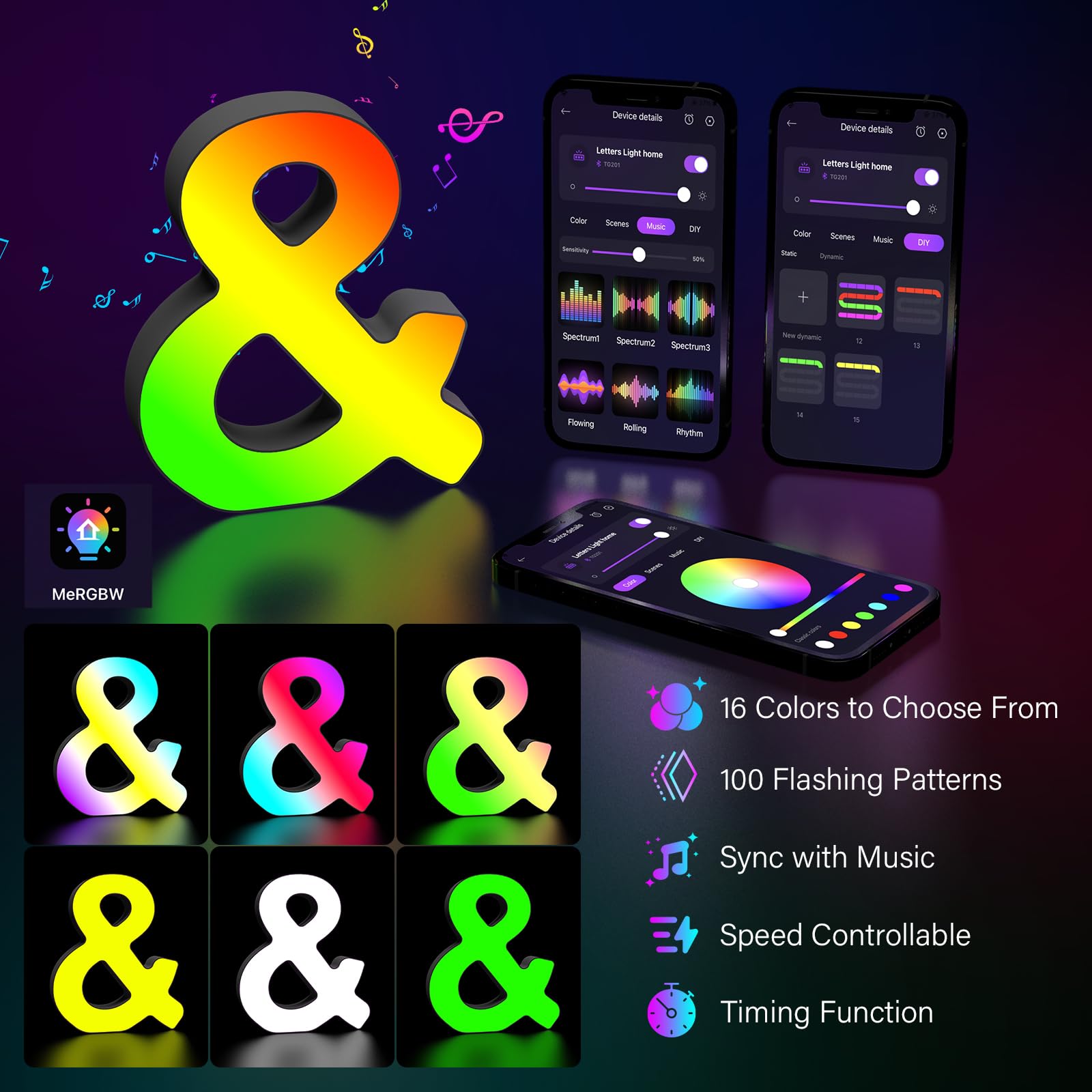 Smart APP Free DIY: The LED letter lights can be freely controlled by remote control or smart APP, with hundreds of different colors and rhythmic light effects. The LED lights are colorful, durable, and have adjustable brightness. You can also DIY your own unique colors and combinations to suit the atmosphere of the room
