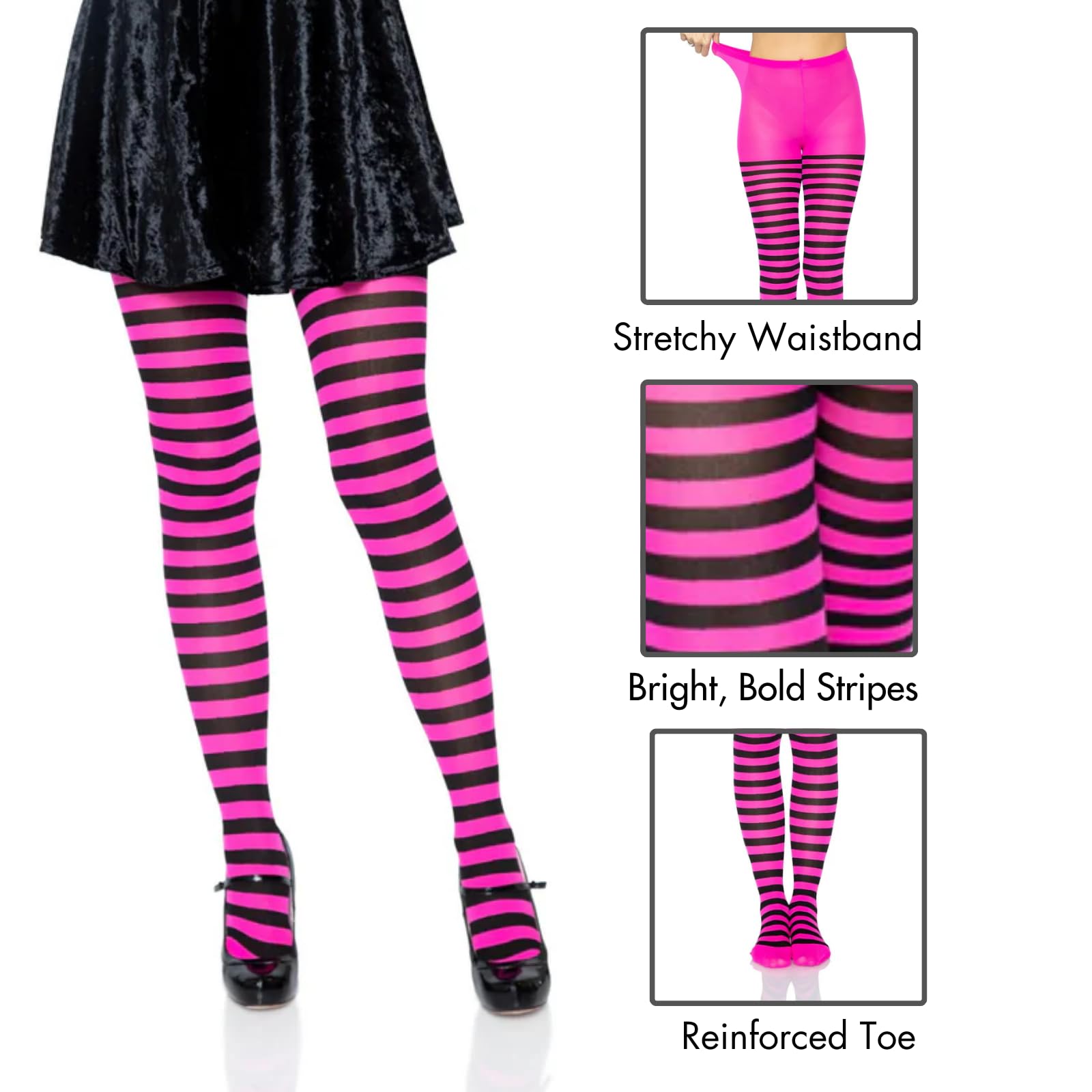 Description For when you're feeling bold and fun, you'll love the Jada Plus Size Striped Women's Tights by Leg Avenue. These amazing tights combine the classic striped tights look with the premium quality construction of Leg Avenue. Pair this with a halloween costume or wear just for fun! Package includes: 1 PC High quality hosiery fabric for long lasting wear Bright, bold stripes are eye-catching and fun Ultra soft woven pattern Perfect fit technology Reinforced toe for comfortable wear The perfect pair of novelty tights Hand wash cold, Do not bleach, Drip dry