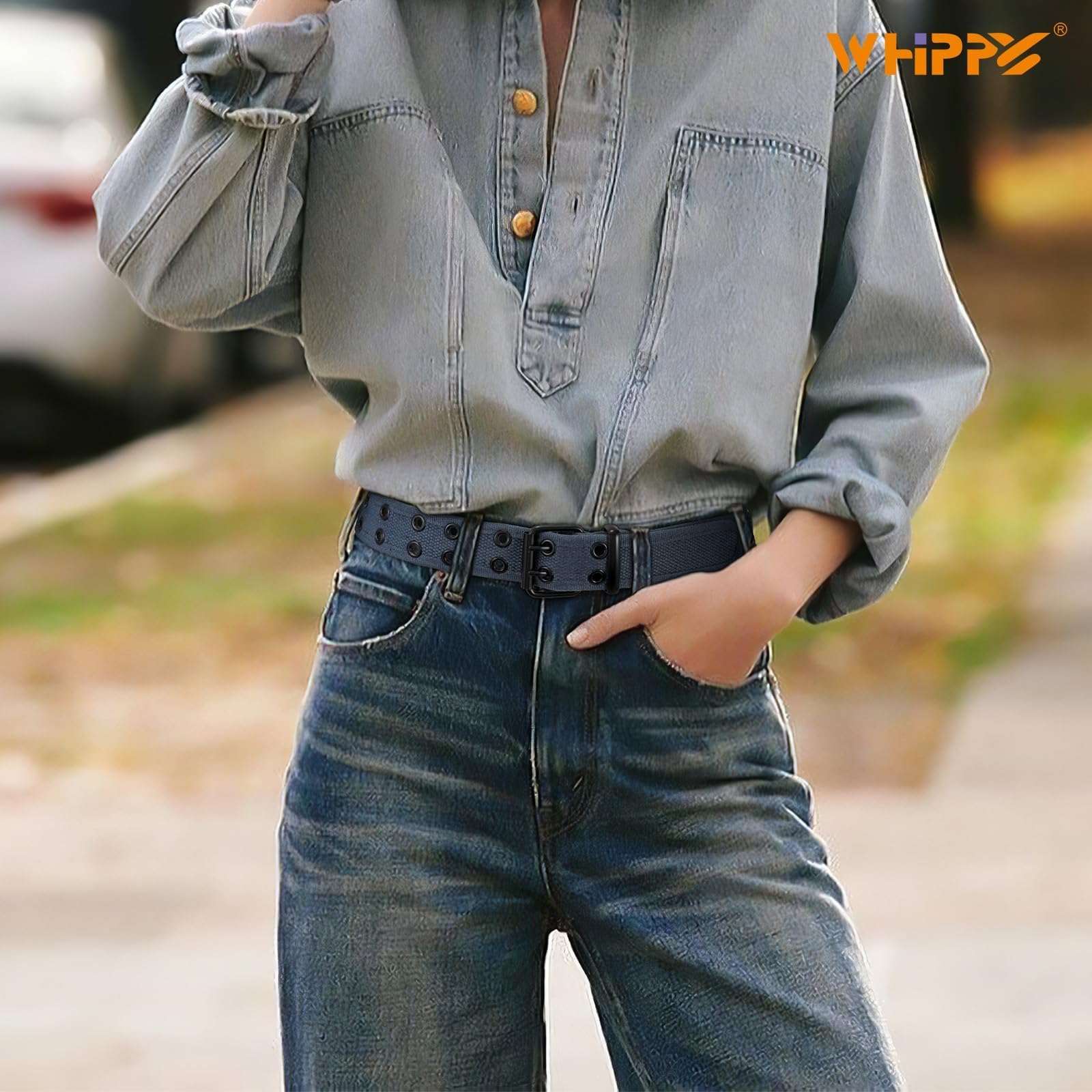 [Stylish]: This mens casual belt features a punk-style double rivet grommet design, showing a unique sense of fashion and can be easily matched with a variety of clothing. Whether men or women, this jeans belt is a great accessory to show your personality.