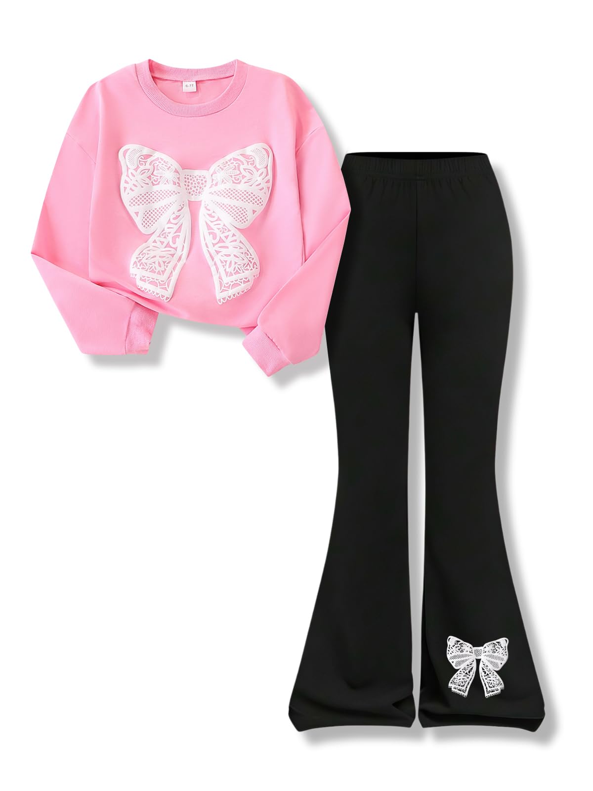 Unique Design: The cute solid colour sweatshirt with bow embellishment of this girls' suit is a more elegant and cute outfit, with flared trousers, which makes your child more elegant and beautiful in it
