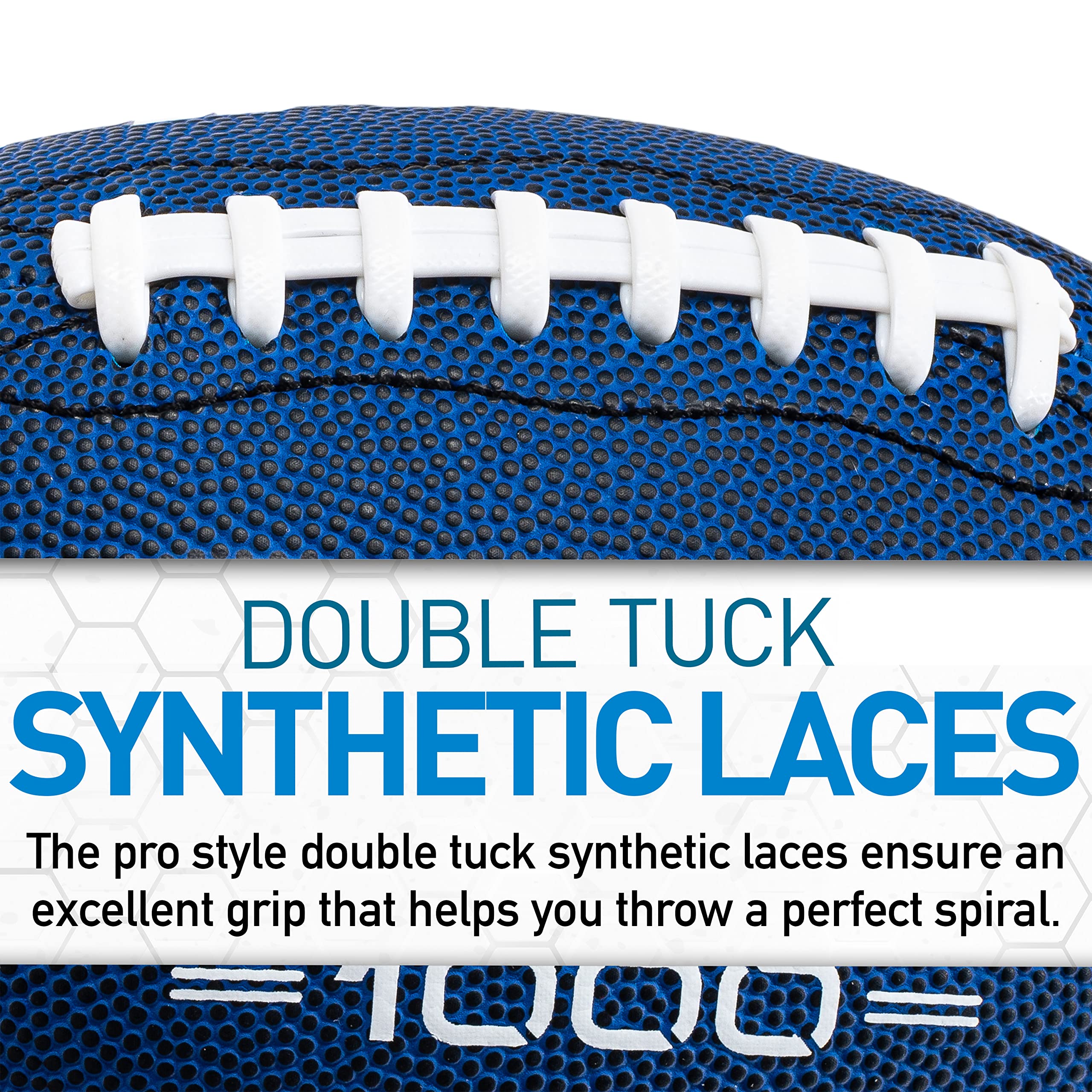 EASY GRIP: The deep-pebble surface material and double tuck synthetic laces ensures extra traction which makes the footballs easier to throw and catch