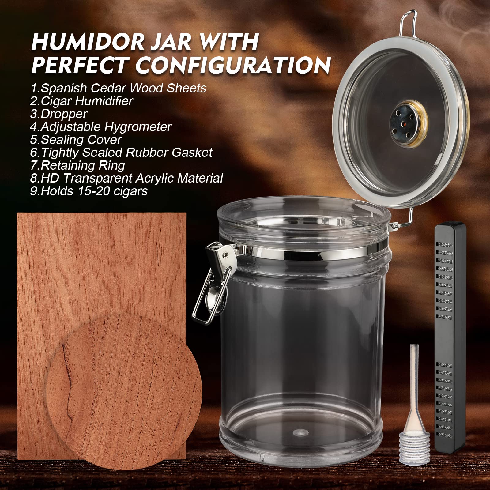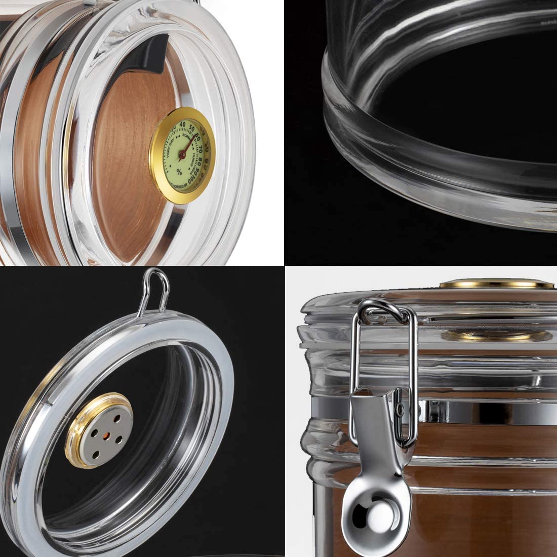 Construction: Retaining ring with top fixed,tightly sealed rubber gasket, top external hygrometer,easy to read,low cedar wood lining,rectangular humidifier (no need to install,directly in the cigar can)