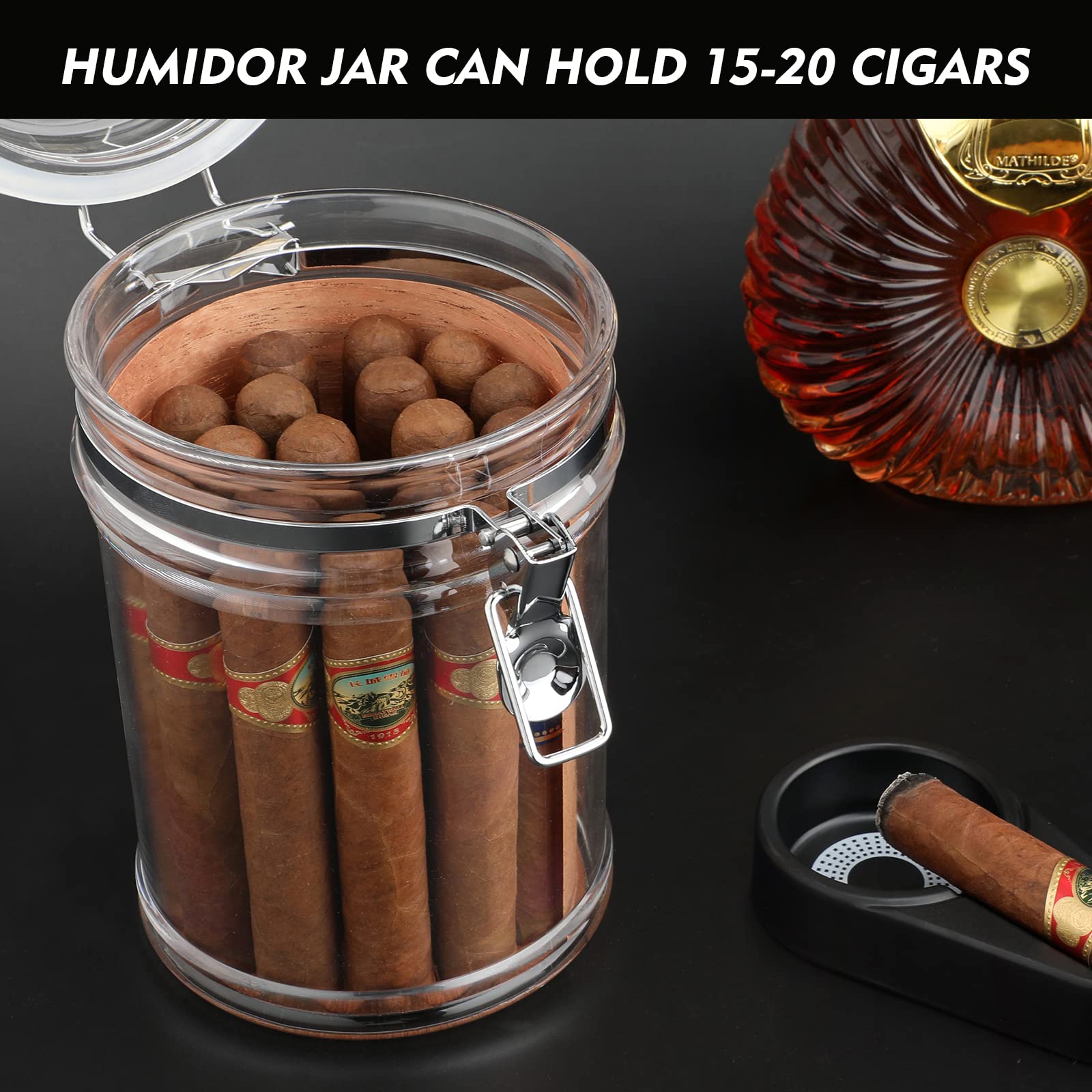 Size: Height 7.28 inches,diameter 5 inches,according to the size of the cigar,can load about 15-20 cigars,This Acrylic cigar humidor is a great cigar accessories, also an excellent ideal as a gift