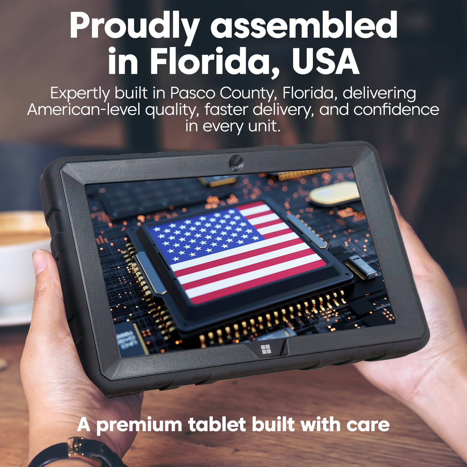 Proudly Assembled in Florida, USA: Each Fusion5 FWIN232 PRO N5 is meticulously assembled in Pasco County, Florida, ensuring American-level quality, faster logistics, and confidence in every unit. A premium Rugged Windows Tablet PC built with care.
