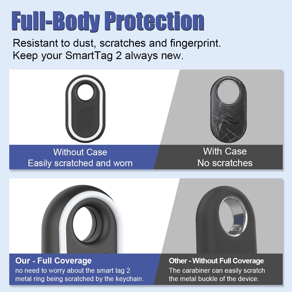[All Round Protection] The full wrap-around design can protects the entire Galaxy SmartTag2 from dust, scratch and external impacts.It also prevent SmartTag 2 from popping up, provides secure protection for your SmartTag 2 no matter what kind of activity is done while wearing it