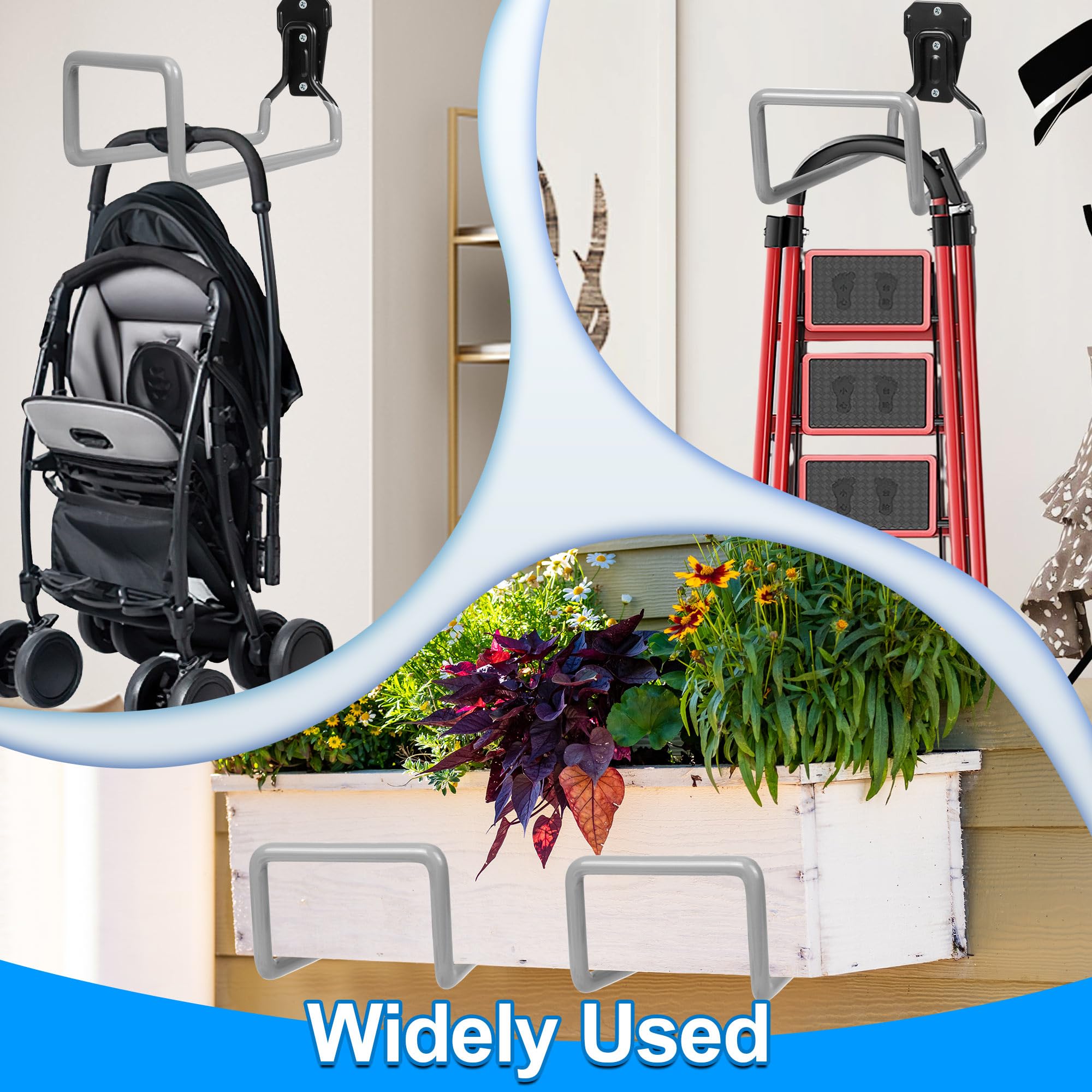 【Wide Application】Our garden hose rack is perfect for water hose, extension cords, air compressor hose, pool hose hanger, garage storage, strollers, bike, etc. Perfect for garden, garage organization and industry.