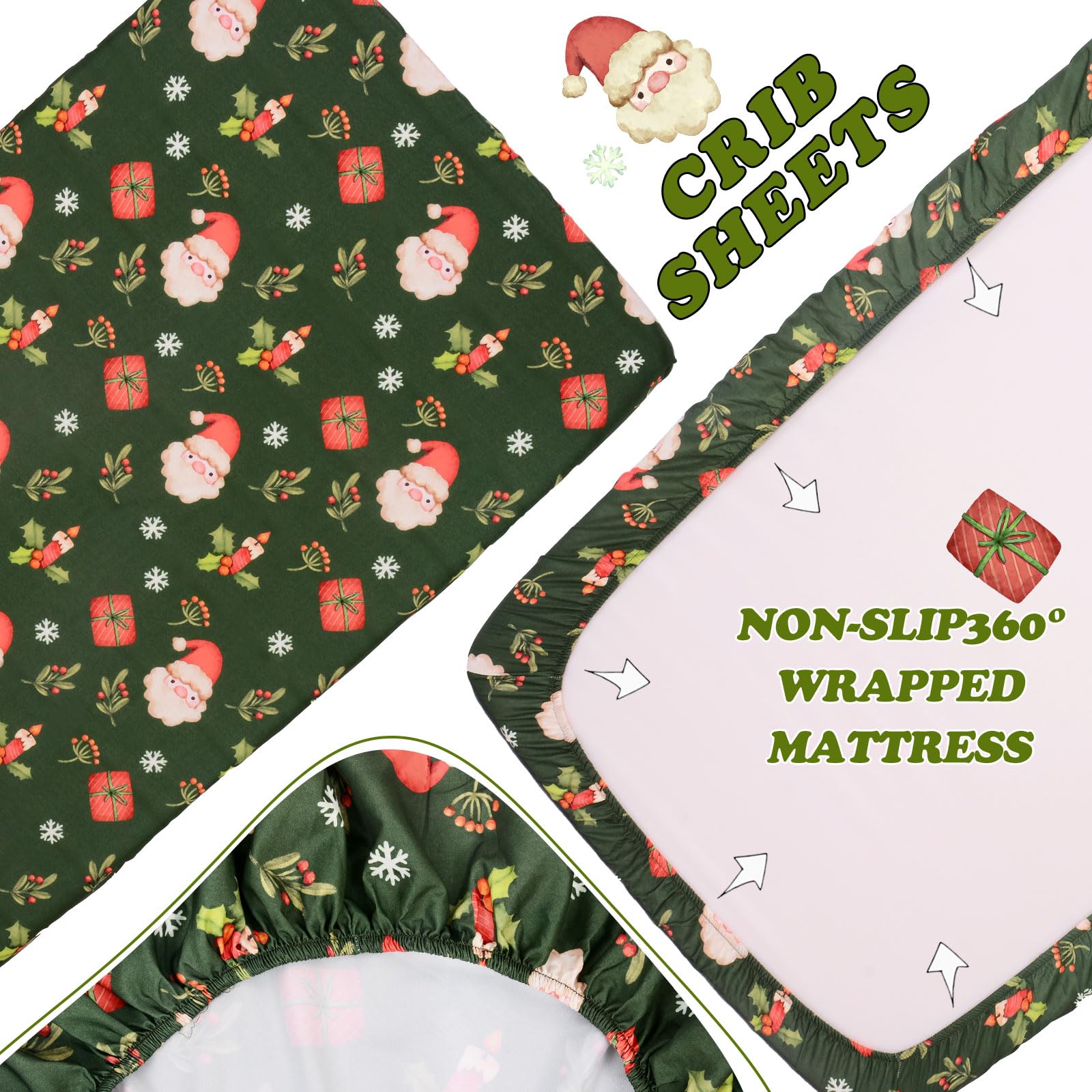 【SOFT MATERAL】our Santa Claus crib sheet is made by high-quality polyester.This naturally material is soft and breathable.It creates a comforting and calming sleep environment to help kids get the rest they need.