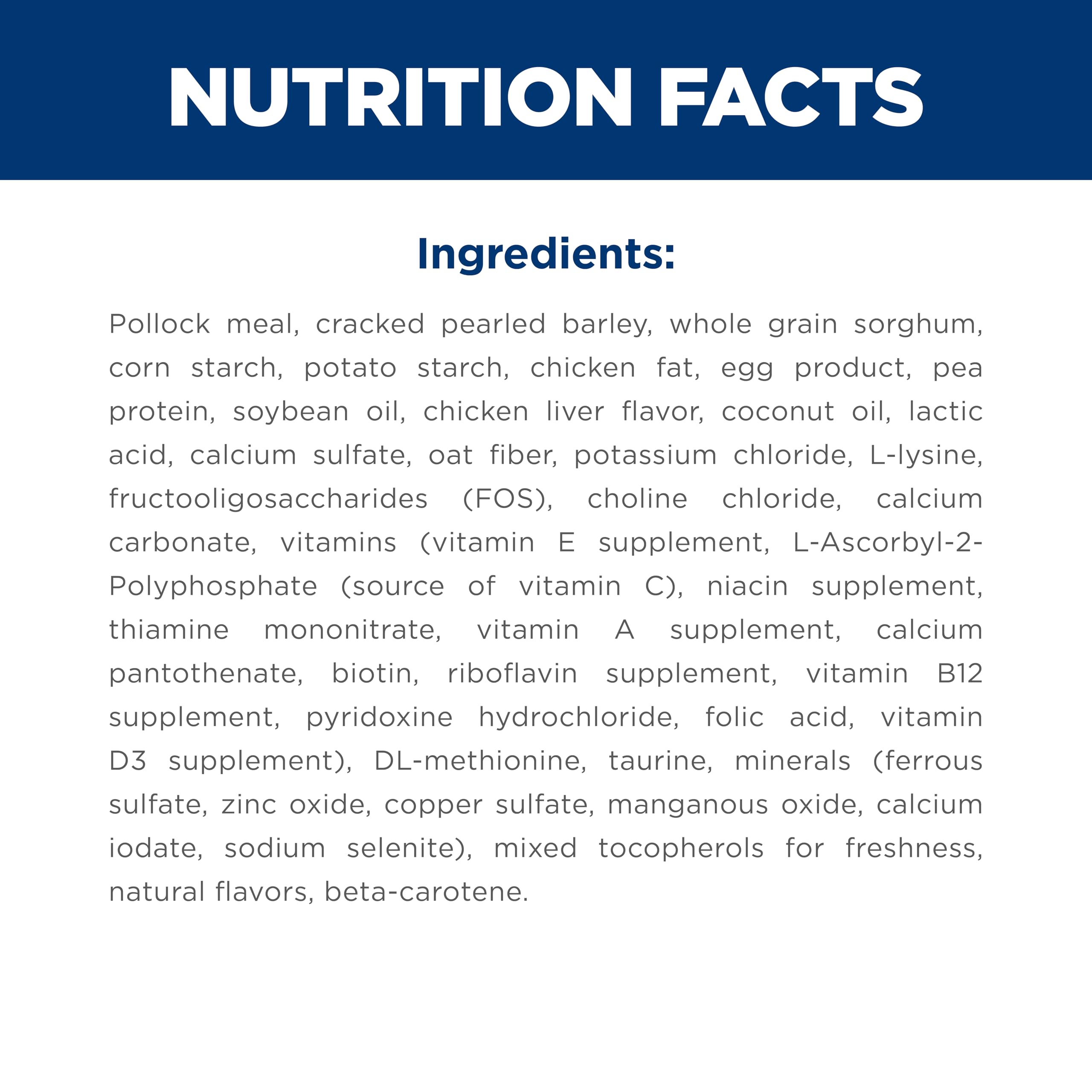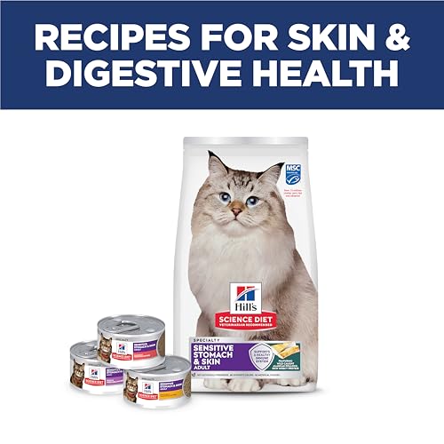 Hill's Science Diet Adult Sensitive Stomach & Skin Pollock Meal and Barley Recipe dry cat food is science-backed nutrition that is specially formulated to nourish healthy pets who are prone to occasional digestive upsets and support healthy skin. This highly digestible formula for sensitive stomachs uses prebiotic fiber to fuel gut bacteria and support a balanced microbiome. In addition, this dry cat food is made with natural ingredients with added vitamins, minerals and amino acids. This food is an excellent source of vitamin E and Omega-6 fatty acids, nourishing the cat's skin and helping to maintain a healthy, shiny fur. This food is packed with a powerful combination of clinically proven antioxidants, including vitamins C and E, to support a healthy immune system. This nutrition is formulated with decades of cutting-edge research to be a great-tasting meal for adult cats