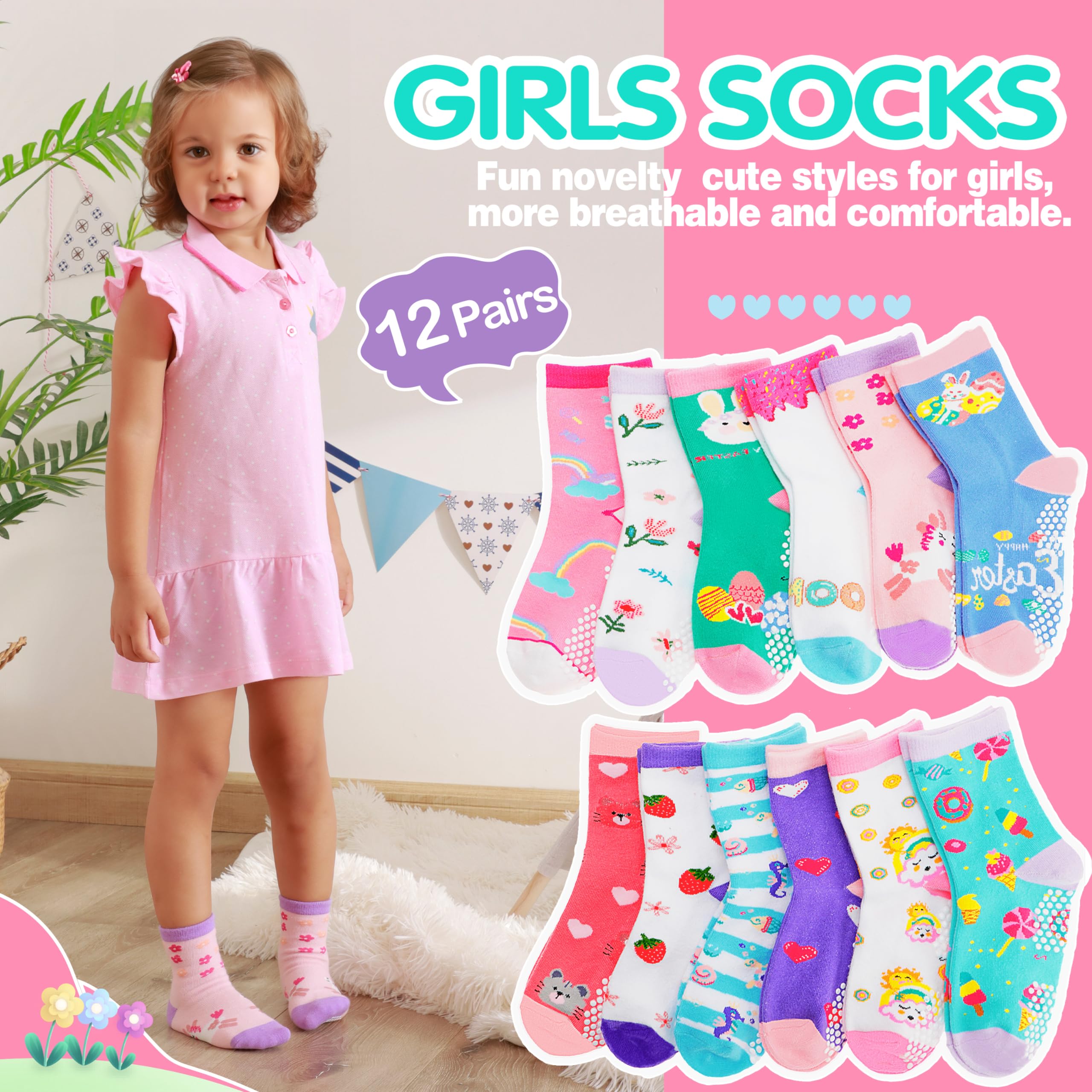 【Novelty Funny Pattern】Novelty animal cartoon girls socks make your kids love to wear. 12 pairs cute funny socks are suitable for everyday wear.They are perfect girls gifts idea for birthday, Christmas, Children's Day,Crazy Socks Day or other commemorative days.
