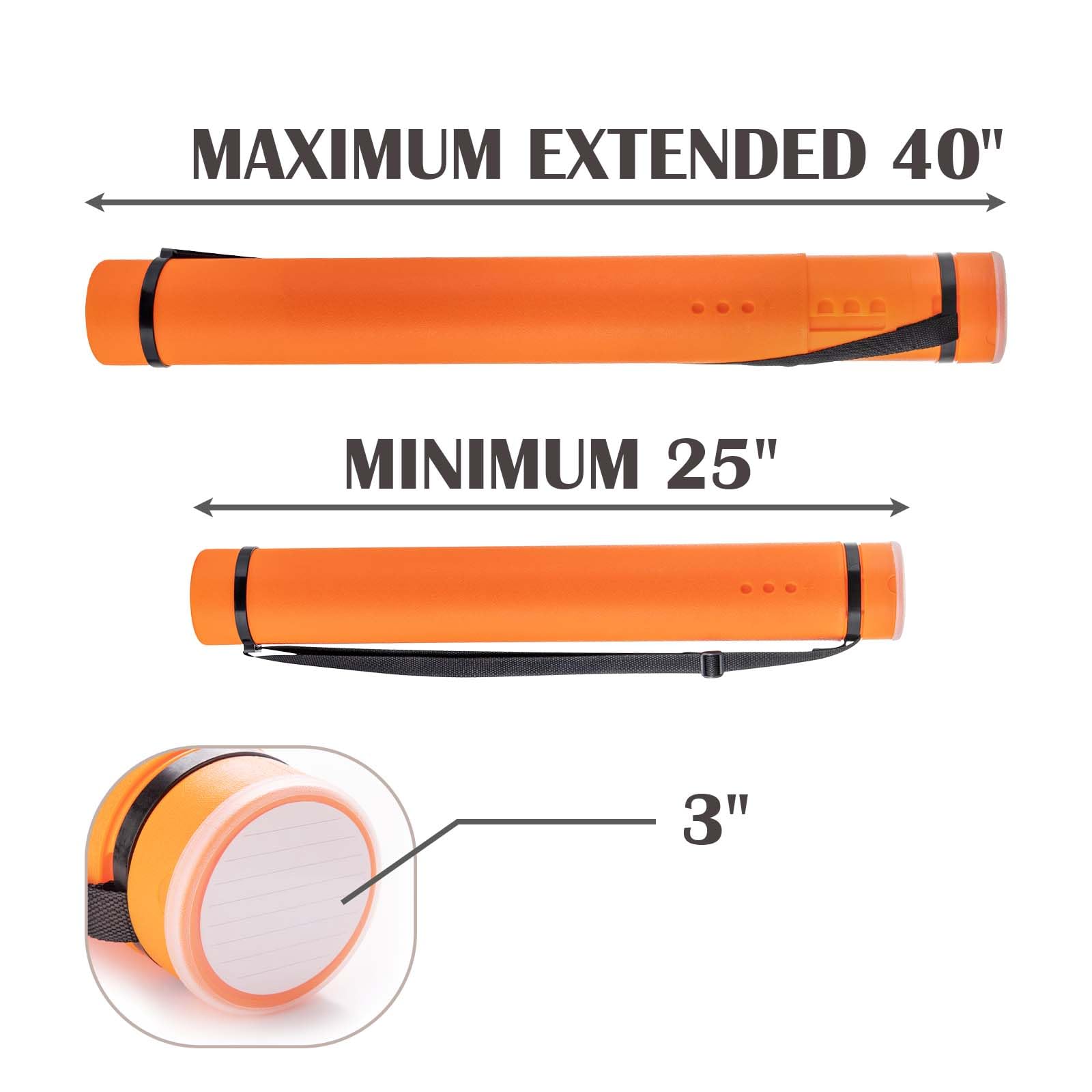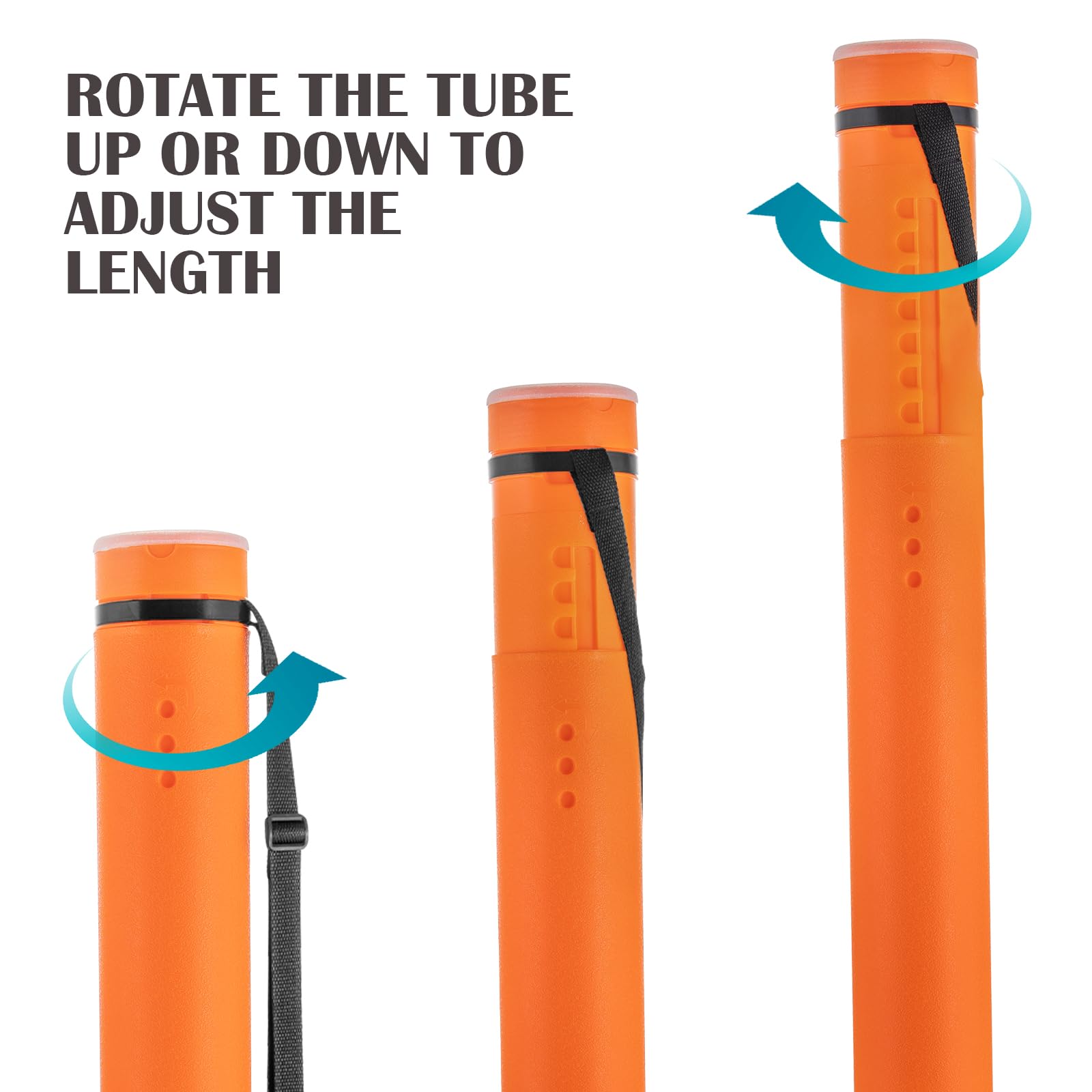 Extendable Tube: JJRING poster tube has a telescopic tube to store longer posters. It measures 25" before extension and can be up to 40" when fully extended. Rotate the tube up or down to adjust the length and rotate back to lock