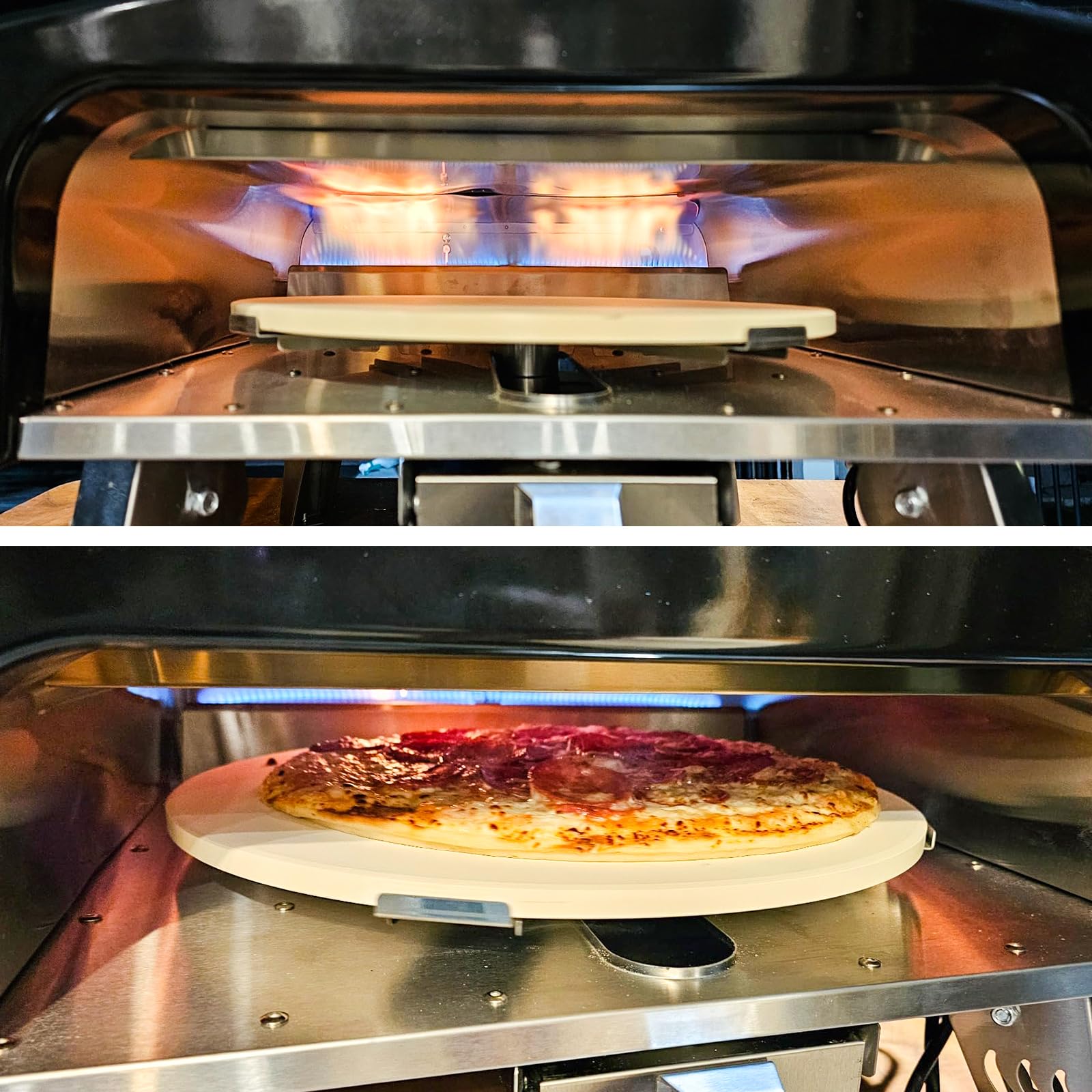 [360° Automatic Rotating Pizza Stone] - This electric-powered pizza oven stone rotates 360 degrees for even heat distribution. The cordierite absorbs moisture from the dough, creating a crispy crust and soft interior for perfectly baked pizzas without overcooking
