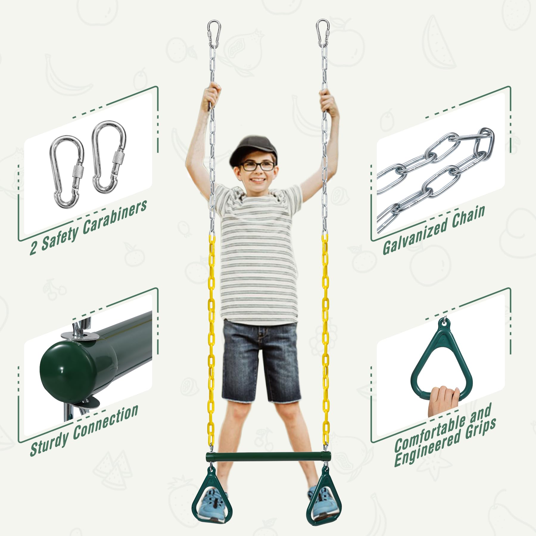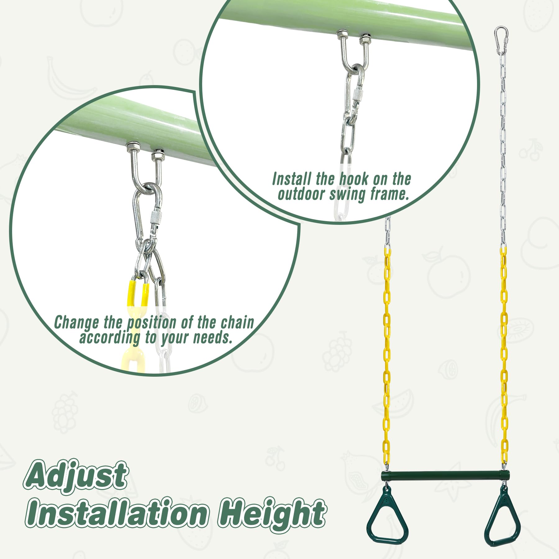 ❤Easy to Install: The swing set trapeze bar is designed to be easy to install. Parents can set up swings quickly and easily, with no extra tools or equipments required. This makes it a convenient option for some families to help their children with a fun outdoor activity that doesn't require a lot of time spent on installation and maintenance.