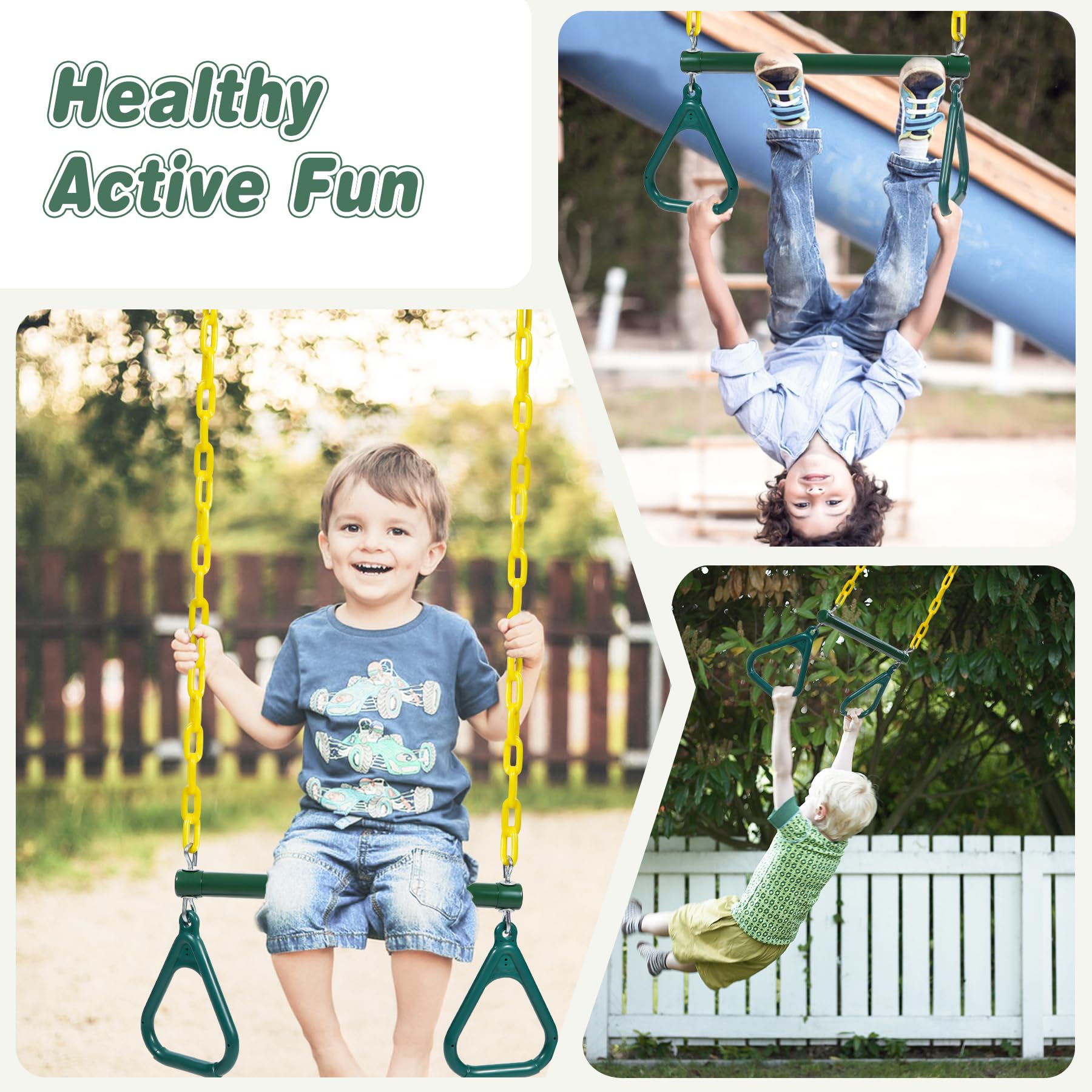 ❤Perfect Swing Combo: Upgrade or refresh your swing today! Get outside and enjoy the fresh air with our trapeze bar. Your child will find multiple ways to enjoy the multifunctional swing set with featured loops and trapeze combinations. This swing can improve the flexibility, strength, and endurance of your backyard gymnast. Our flexible flyer swing can be a great birthday gift and can be widely used as a DIY swing.