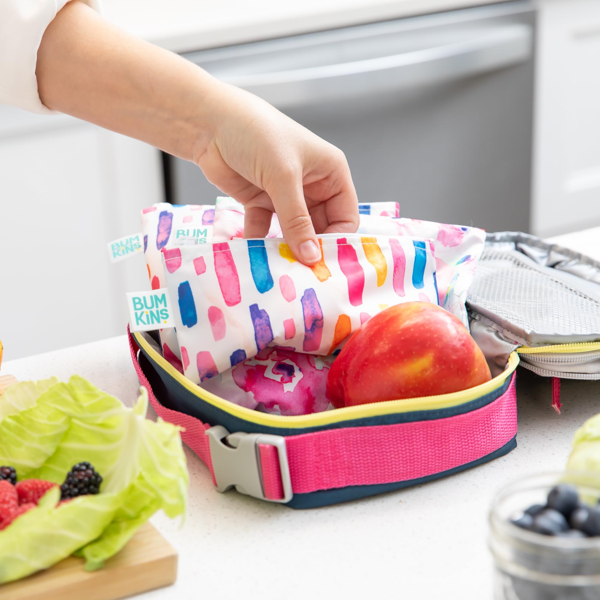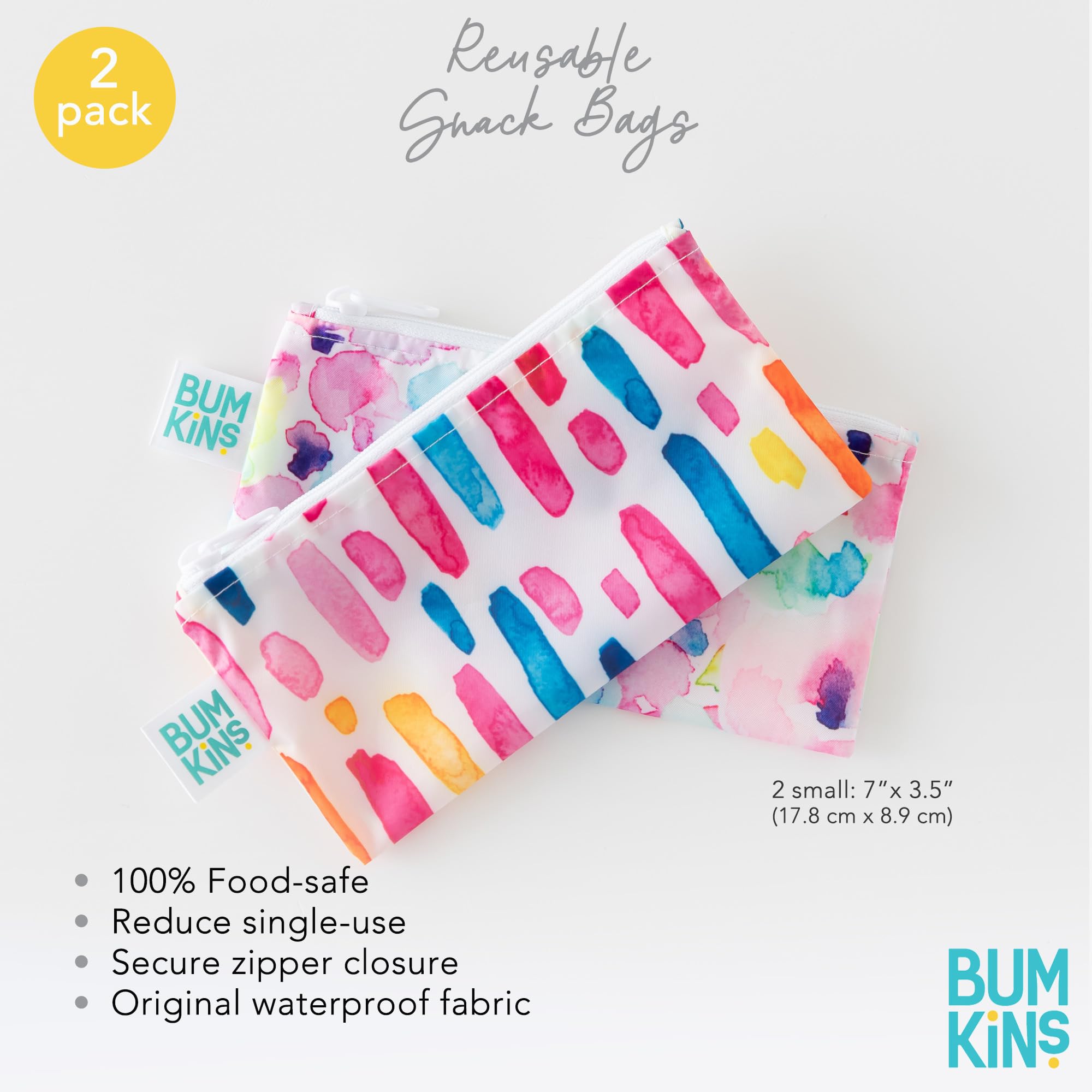 REUSE AND REDUCE WASTE – Bumkins reusable cloth snack bags are made from our original waterproof fabric with zippered closure; not just for lunch, they make excellent organizers for storage and travel; stash inside purse, diaper bag, or travel bag