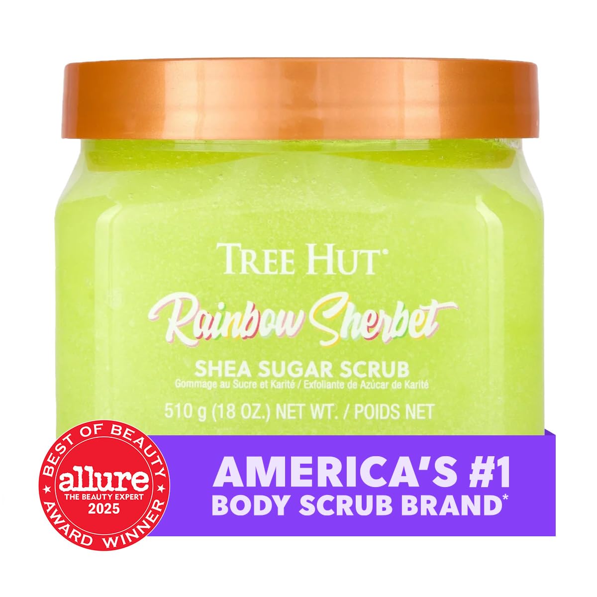 Quench & brighten dull, dry skin with the Tree Hut Rainbow Sherbet Shea Sugar scrub with lime extract and sugarcane. Shea butter deeply moisturizes, nourishes and softens skin while helping to promote elasticity.