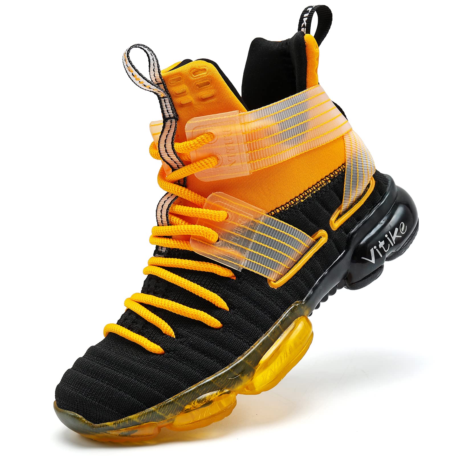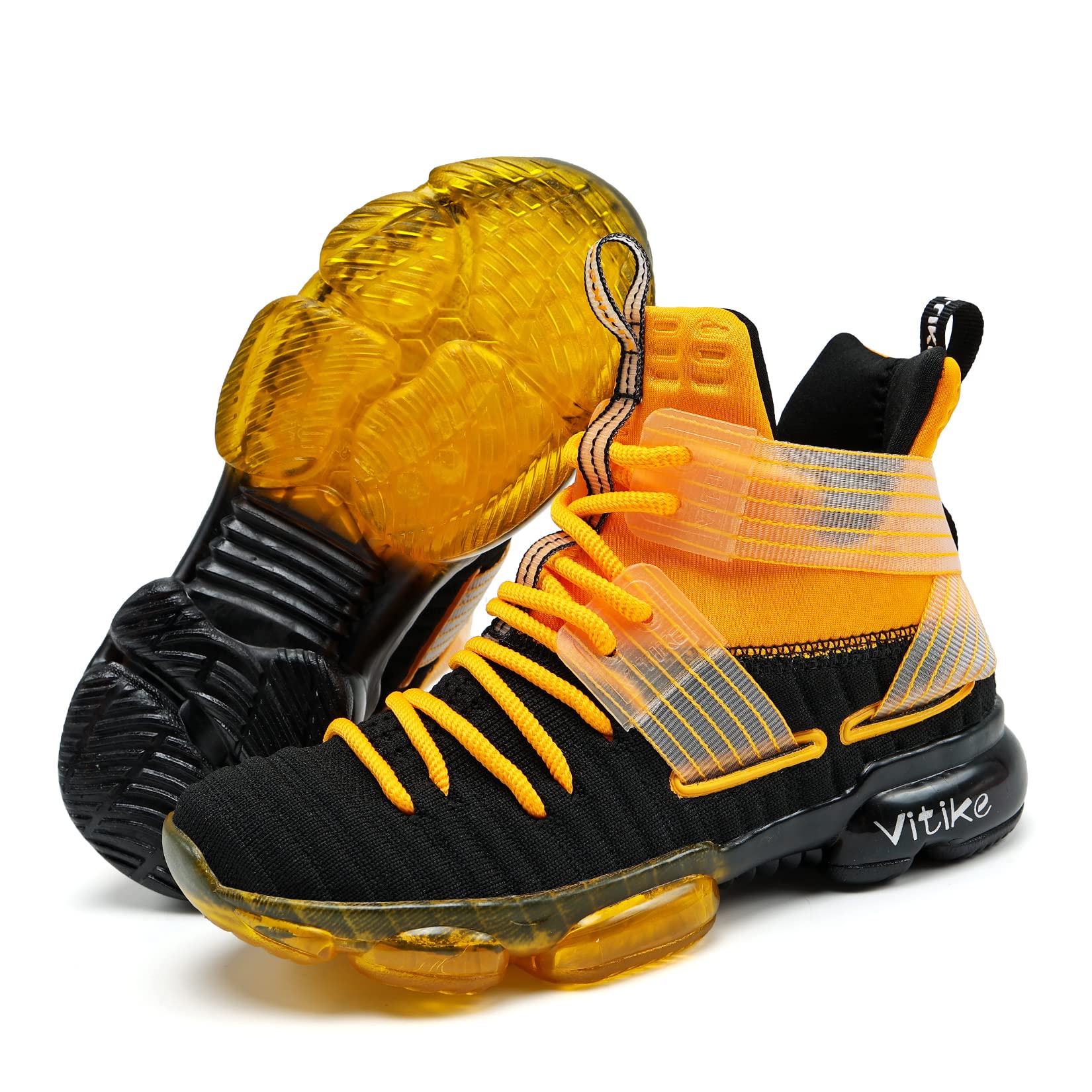 Kids basketball shoes with unique air cushion design which provides cushionin, with TPR bottom which increases the friction between the sole and the ground. They protect children's ankles & knees effectively, and prevents injuries when they have sports activites.
