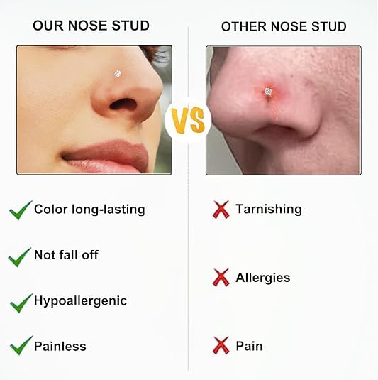 🆕Hypoallergenic Stainless Steel Nose Studs: Expertly crafted from premium 316L surgical steel, this gold nose studs is perfect for sensitive skin. Its lightweight construction features a high-polish finish and electroplating for a sleek, lustrous look