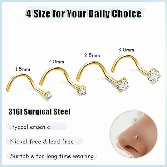 🆕Comfortable and Easy to Use: These screw nose rings slide in effortlessly and provide a comfortable fit, making them suitable for extended wear. Their expertly crafted shape ensures they remain securely in place and do not extend beyond the nostril, giving a subtle appearance that sets them apart from many others