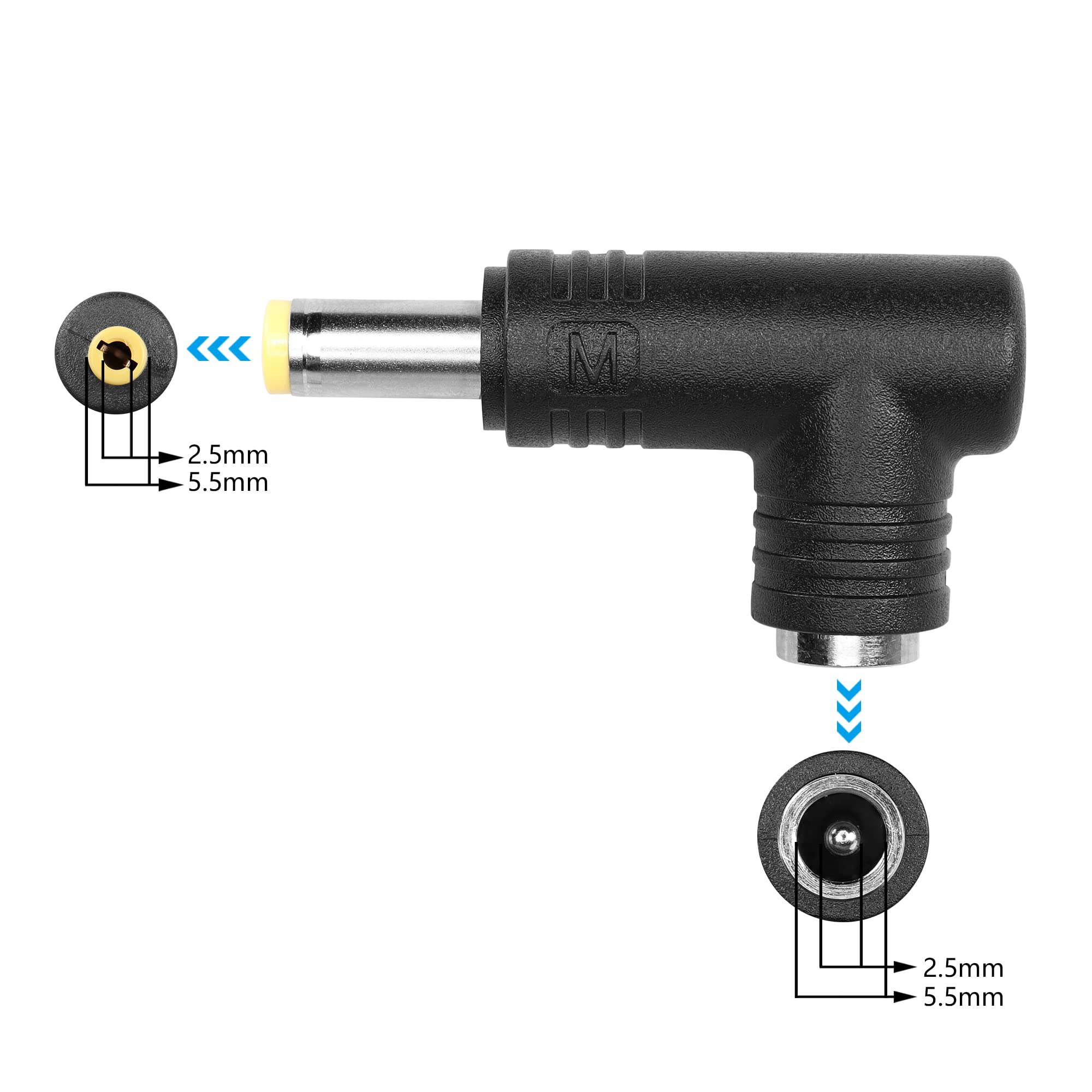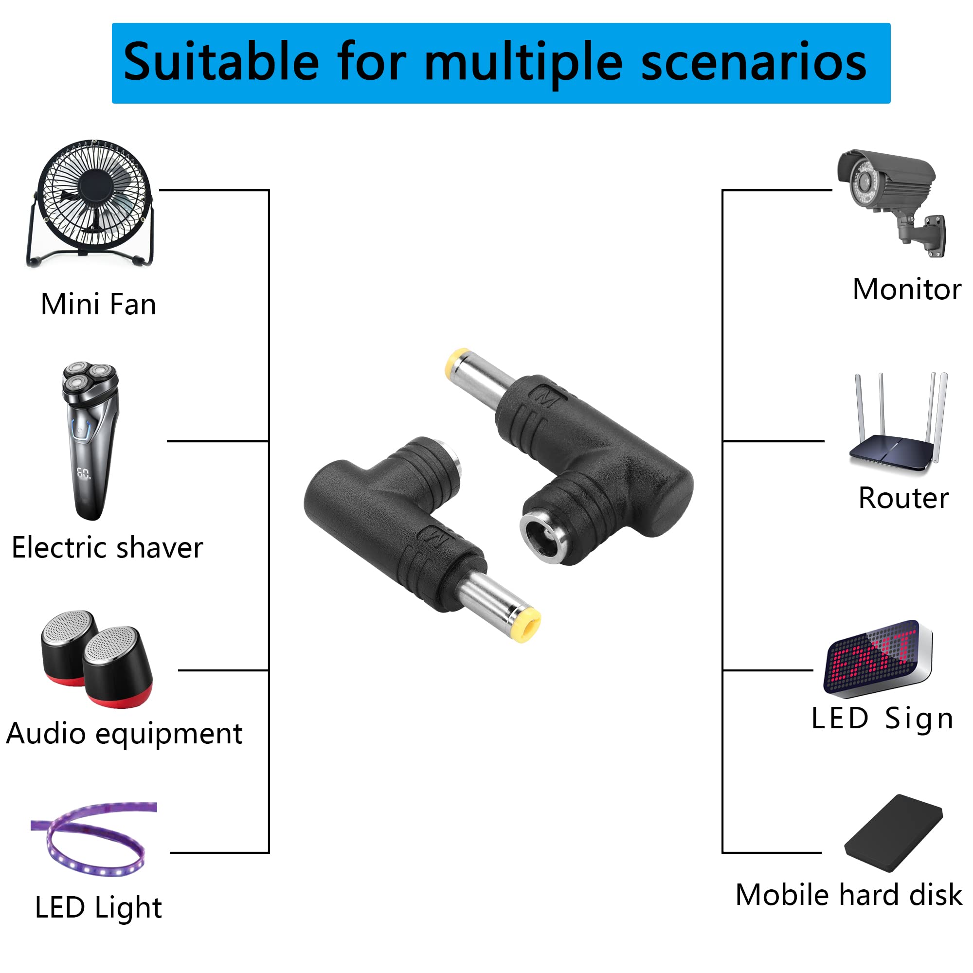 Dc 5.5mm × 2.5mm 90 degree right Angle design, easy cable connection and use,will not damage the cable it is very useful when the socket is in a narrow space
