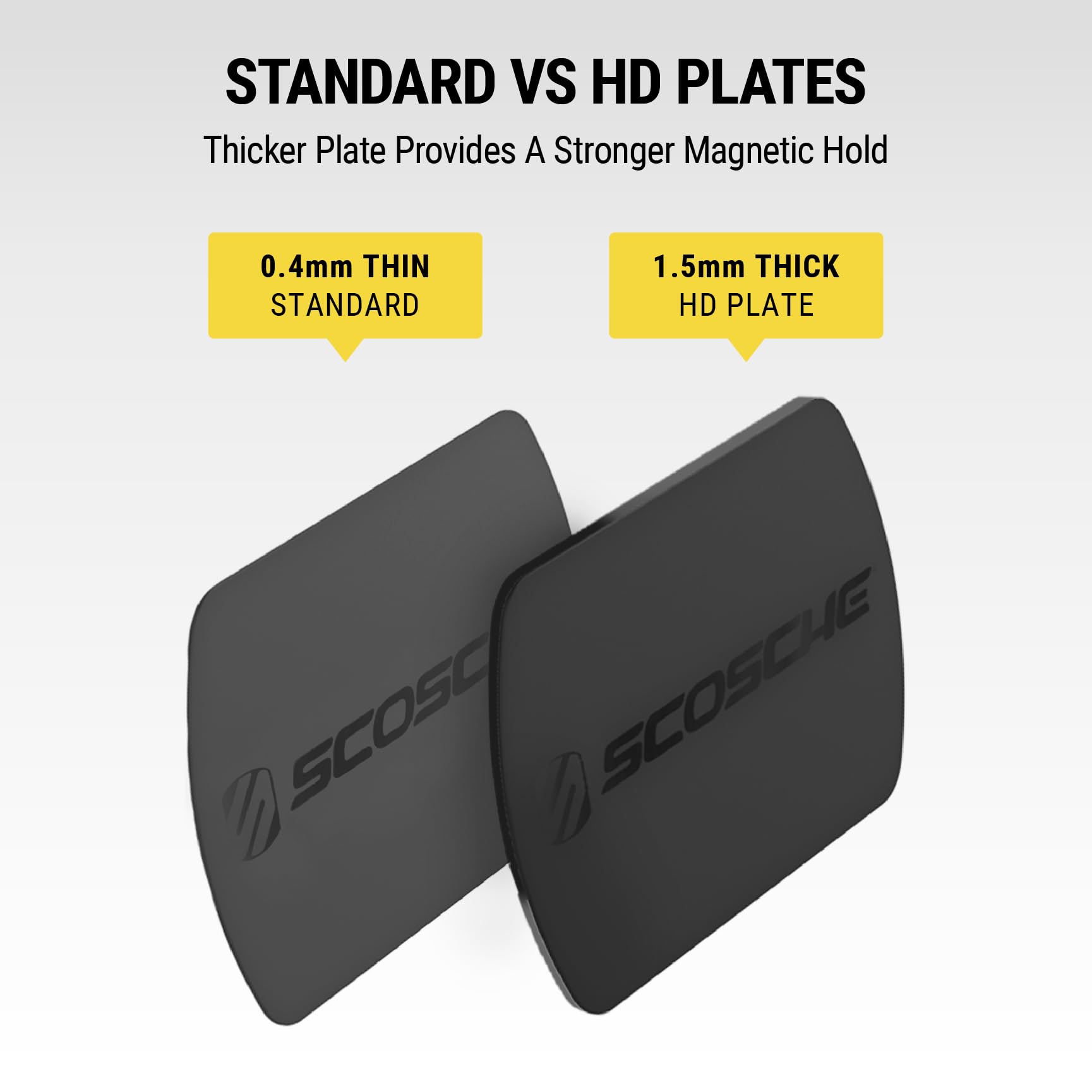 Universal Compatibility - Whether using a magnetic phone mount for your car dash, vent, CD slot, windshield, or any flat surface, our heavy duty metal plate pads securely attach to the magnets in your mount. These extra strength plates are the perfect solution for hands-free use of your cell phone or tablet, and ideal for any of our Scosche MagicMount magnet mounting systems.