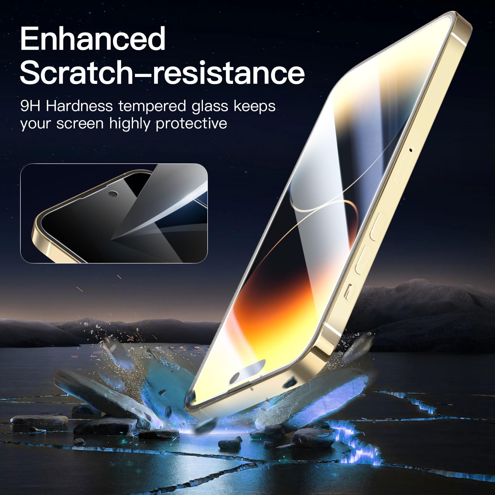 Content: 3 Tempered Glass Privacy Screen Protectors for iPhone 14 Pro Max (6.7 inches) and an easy installation tool. The privacy screen protector can protect the confidentiality of the data on the screen. It reduces the viewing angle to prevent prying eyes, keeping confidential information out of sight from third parties.