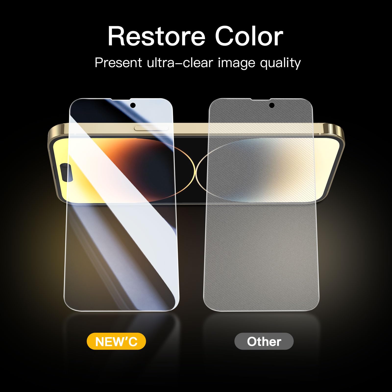 NEW'C 3 Pack Privacy Screen Protector for iPhone 14 Pro Max (6.7 inches), Anti-Spy Tempered Glass Film,Case Friendly Ultra Resistant, Balanced 28-Degree Privacy Angle-Easy installation tool included
